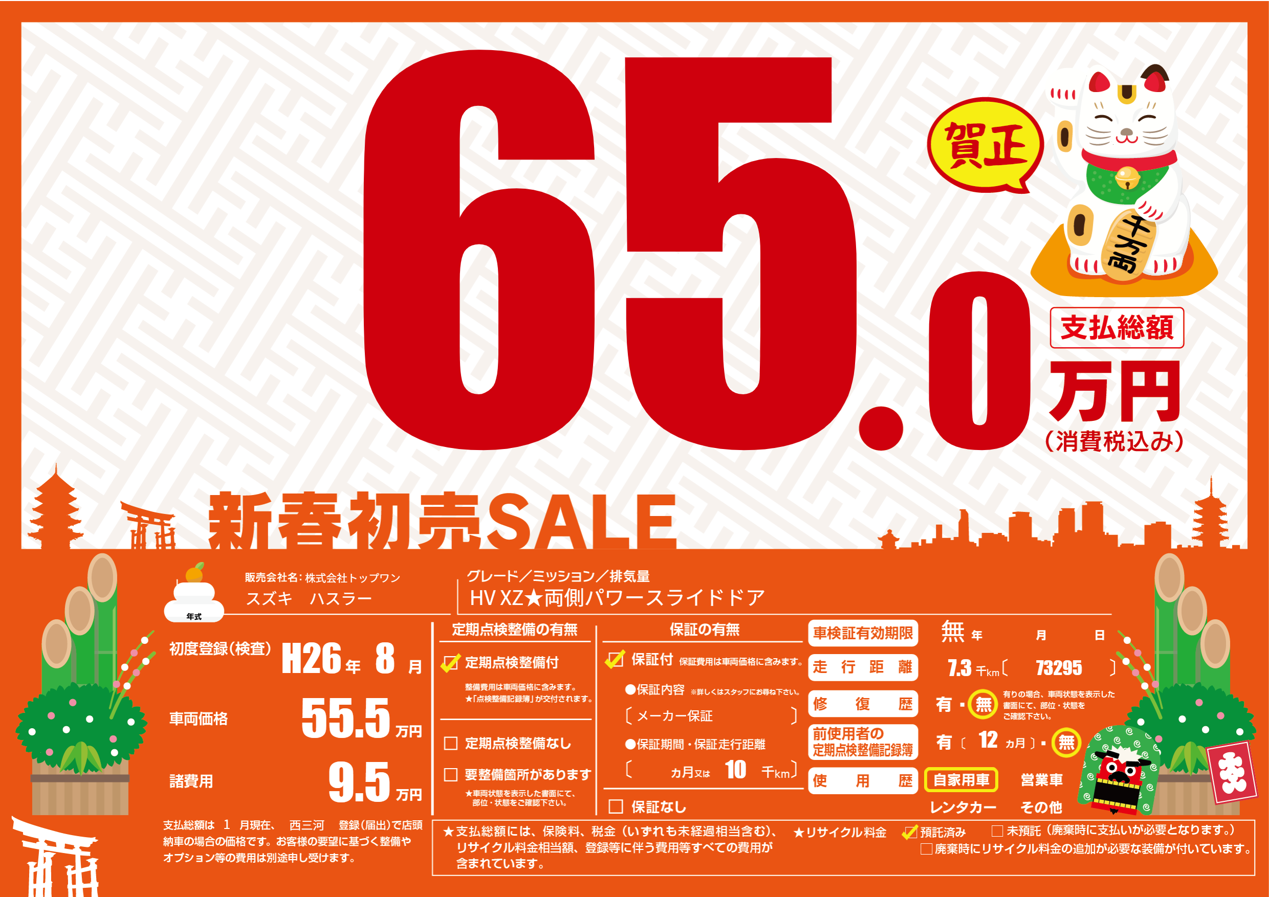 保証付き 保証内容(メーカー保証) ヶ月または10千km |