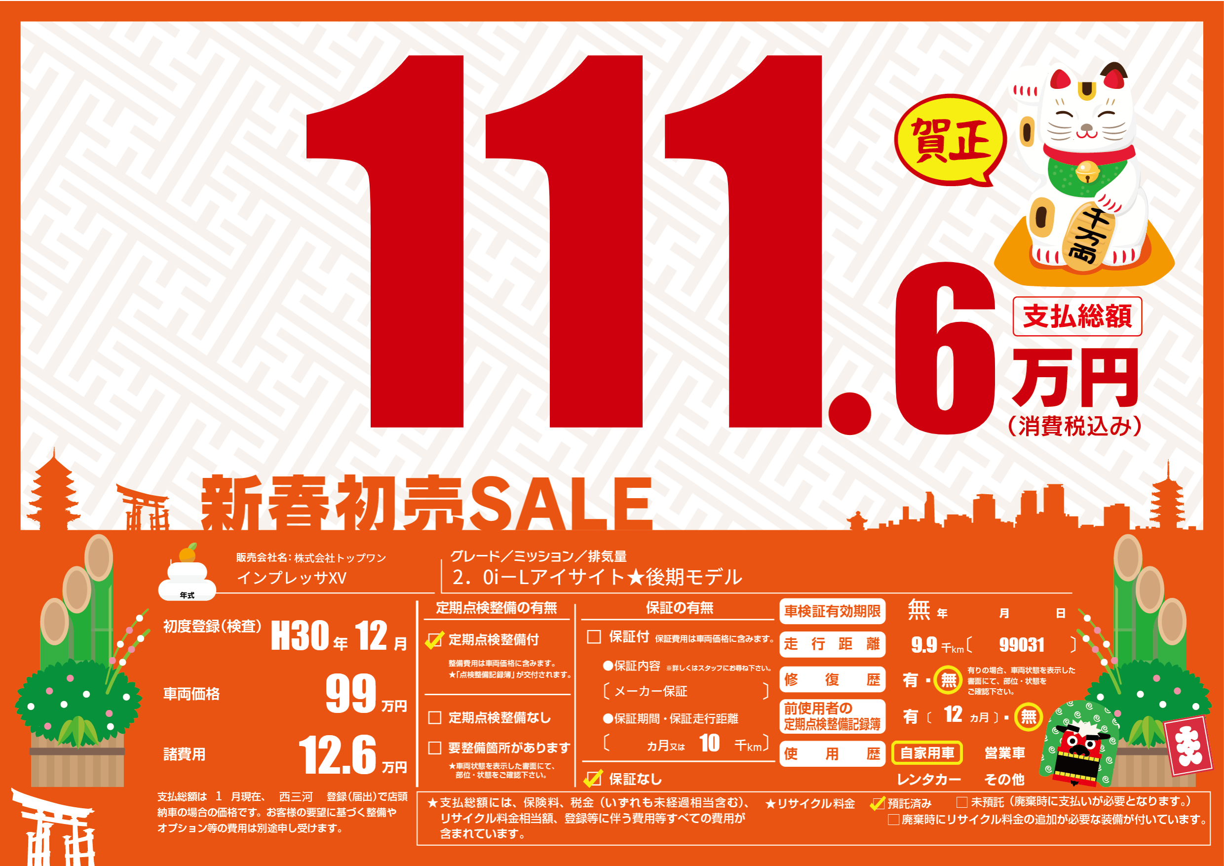 | 車検制限 | 無年 - 月 - 日 | ||