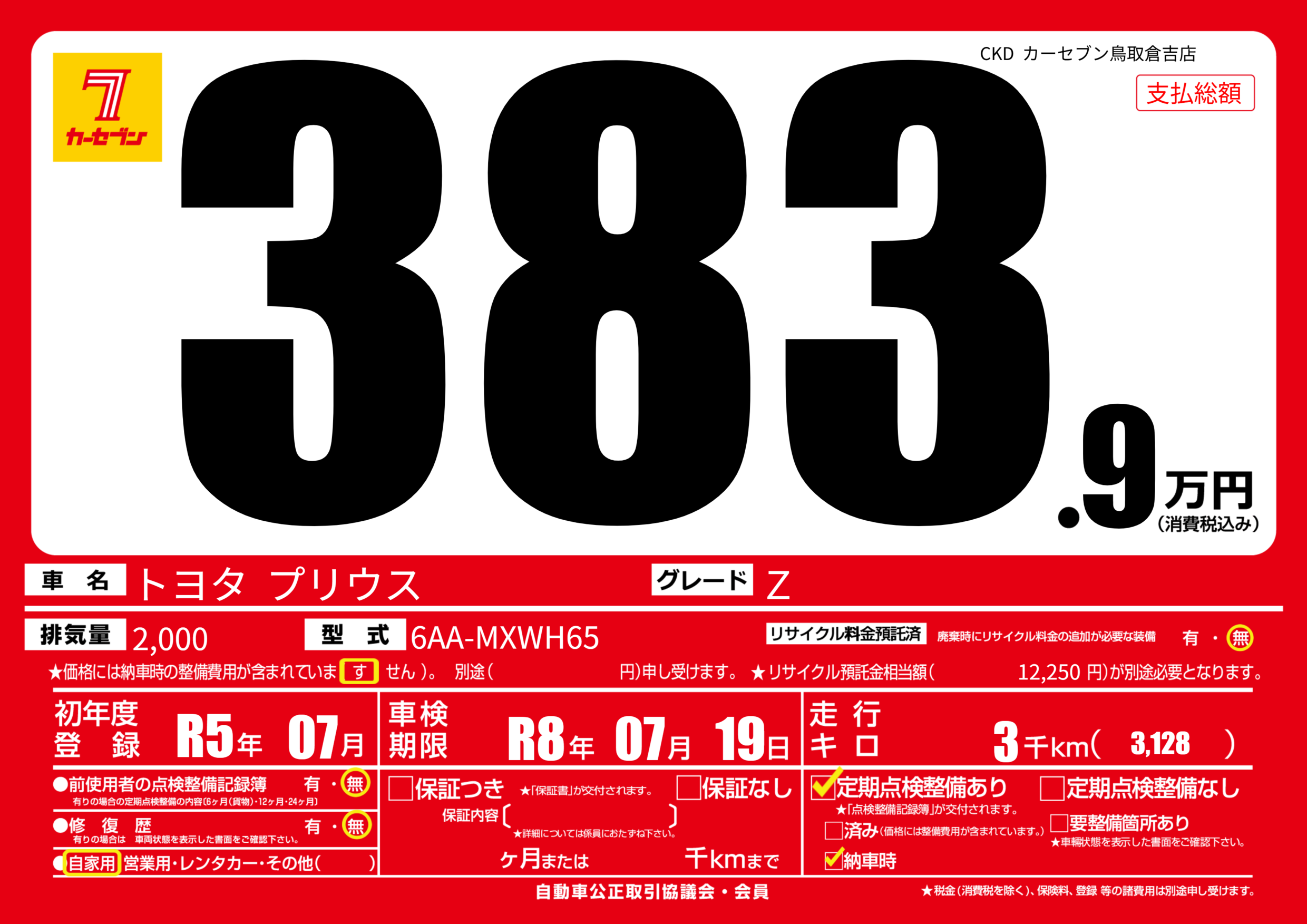 | 車検制限 | R8年 07月 19日 | ||