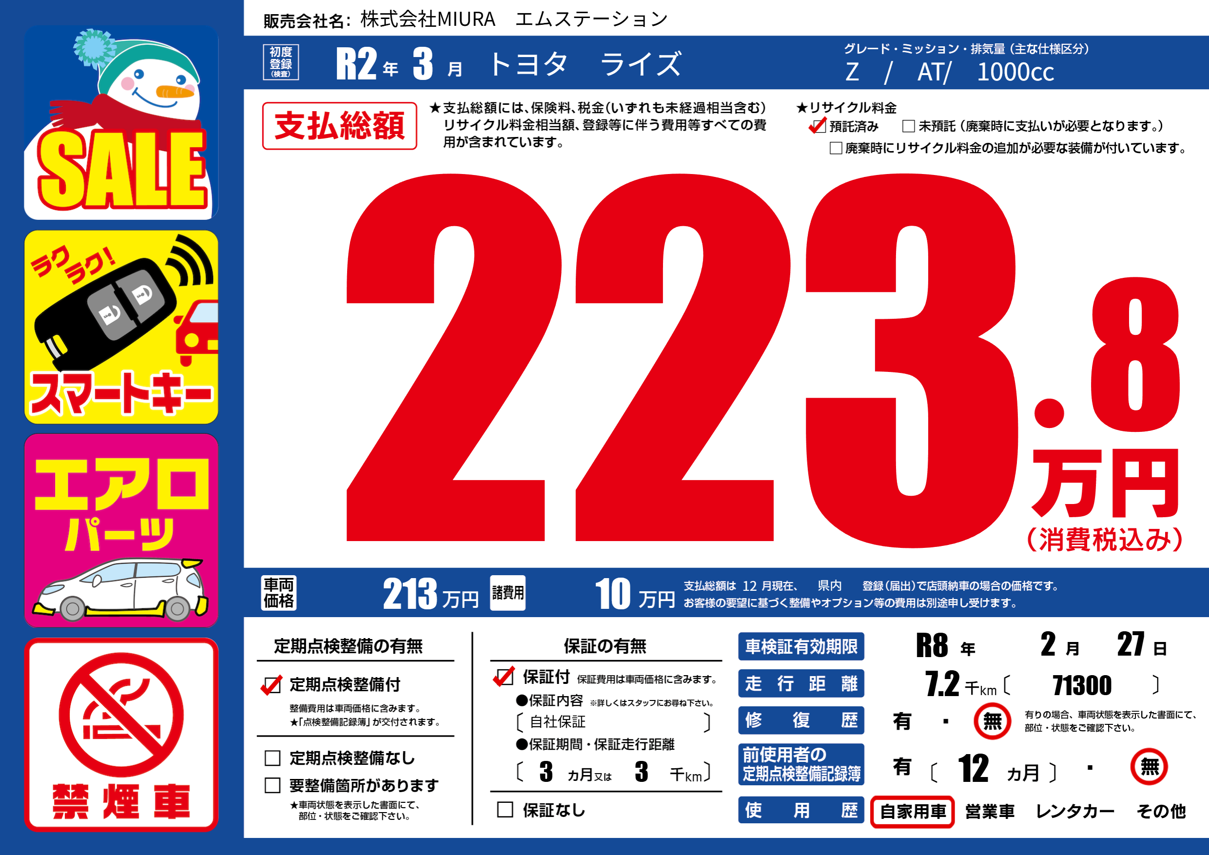 なし | 車検制限 | R8年2月27月 |