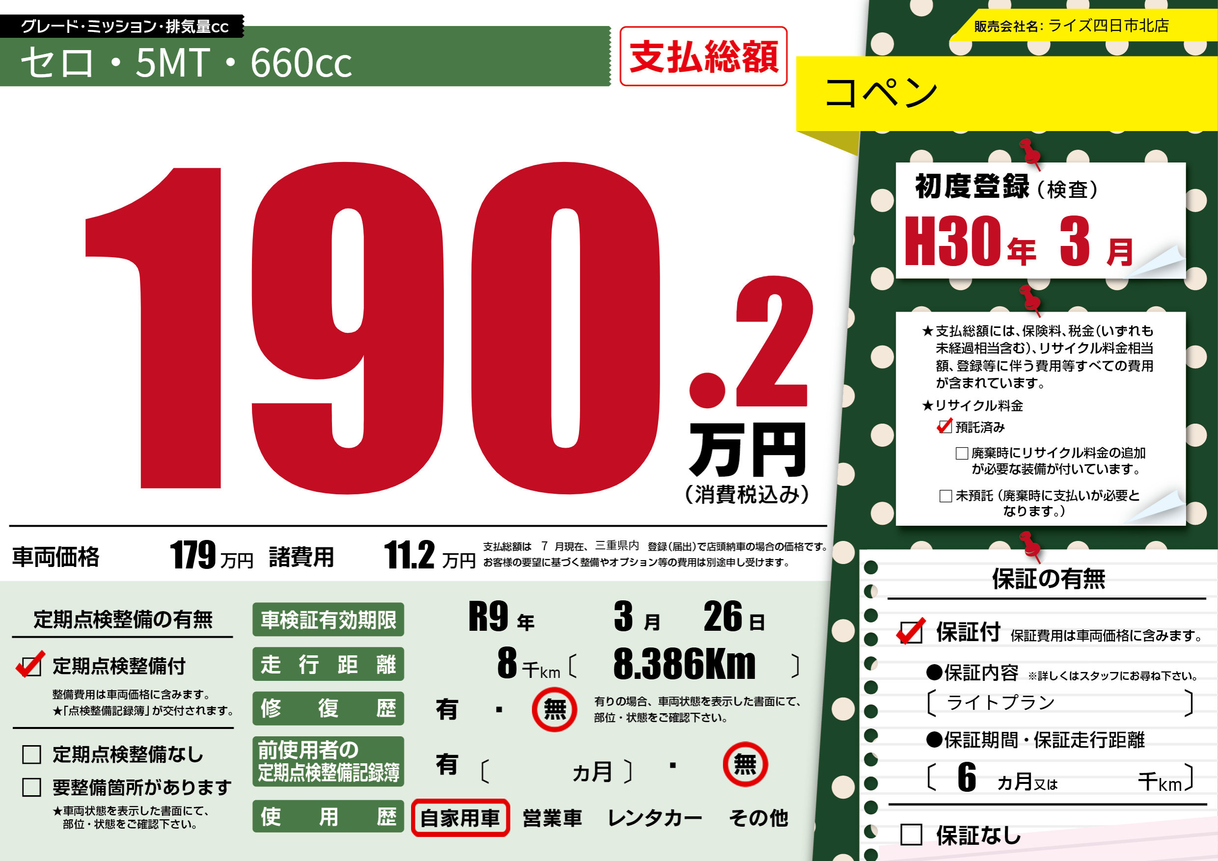 なし | 車検制限 | R9年3月26月 |