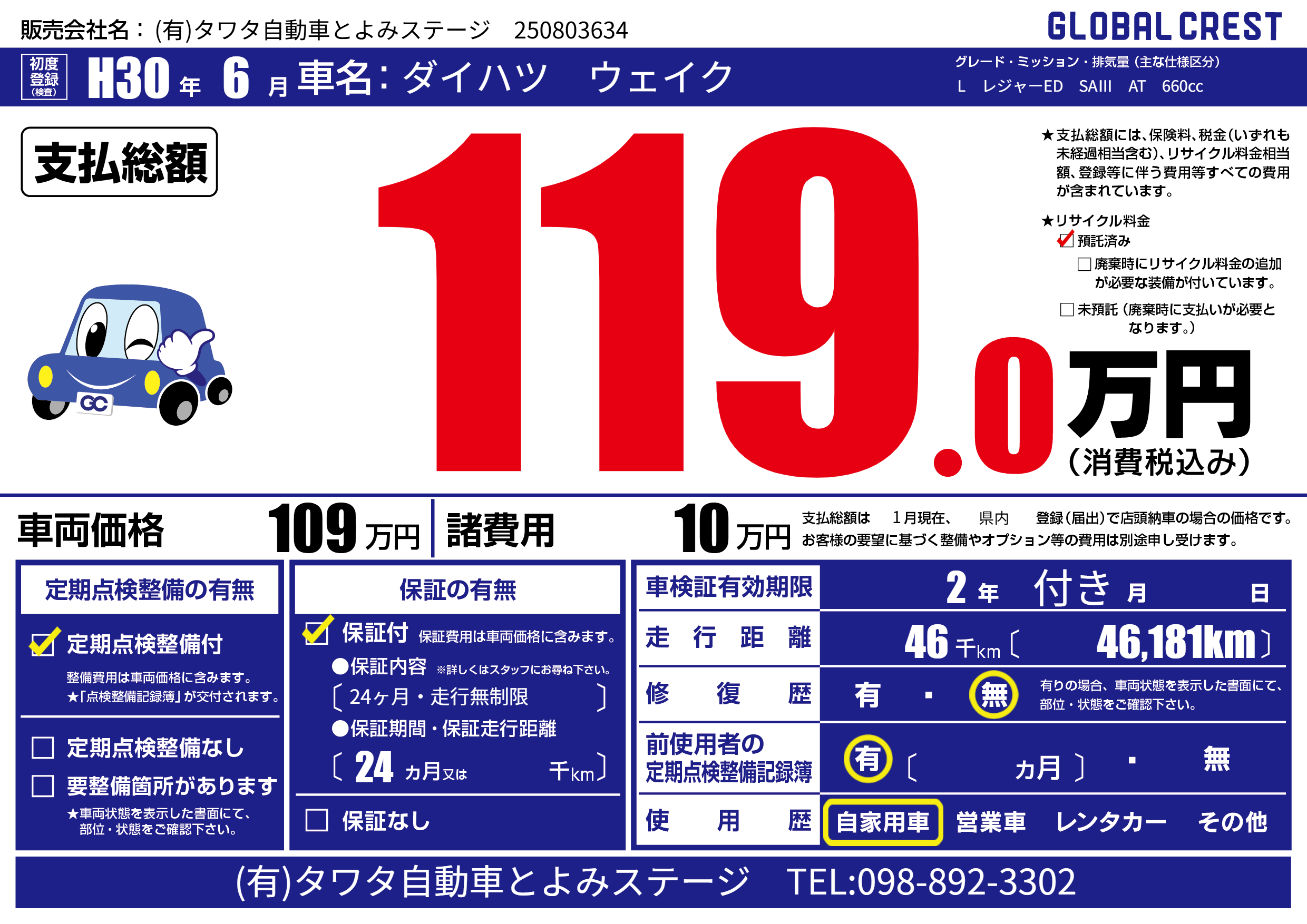 | 定期点検整備 | 定期点検整備あり | ||