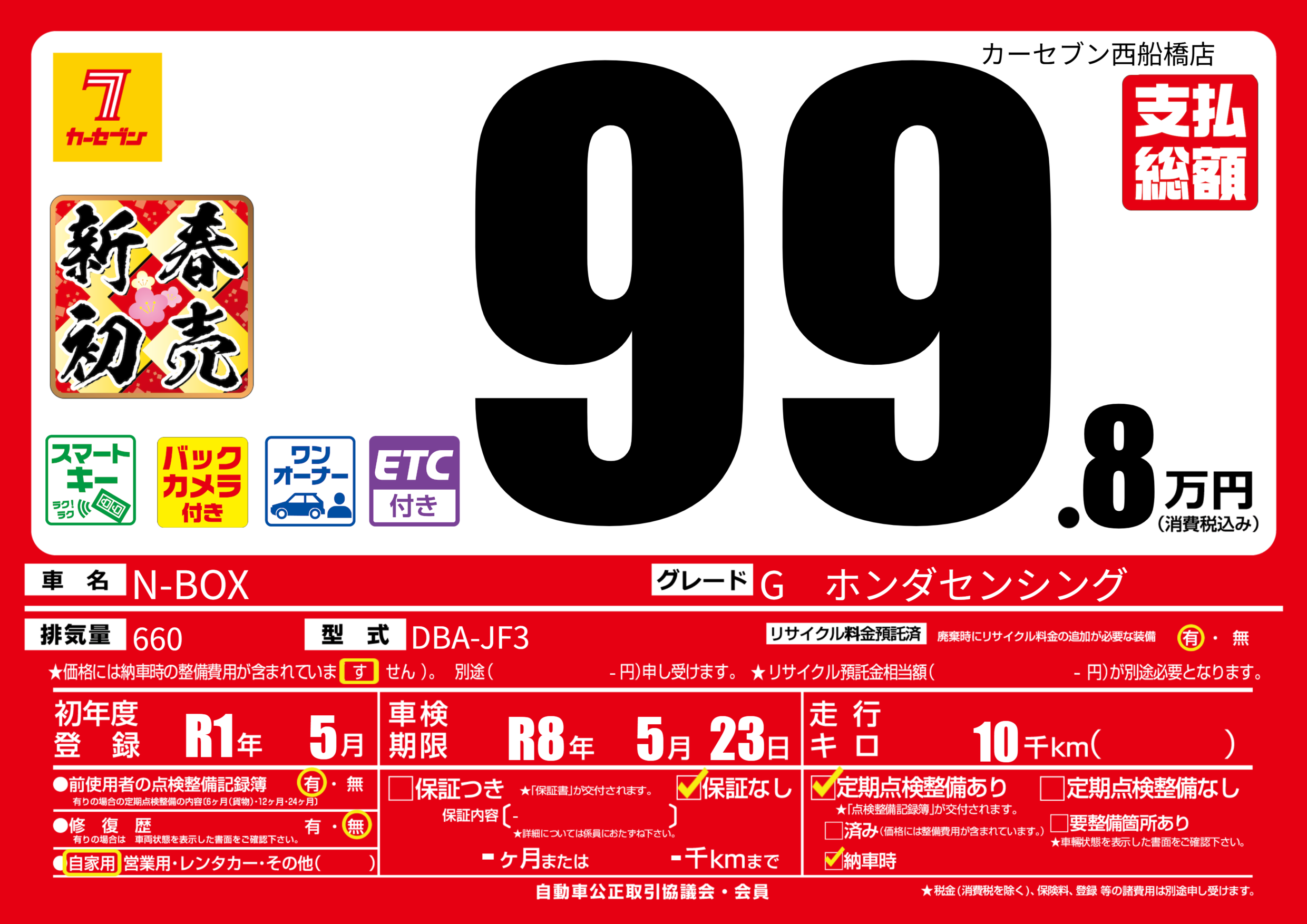 車検制限 | R8年5月23月 |