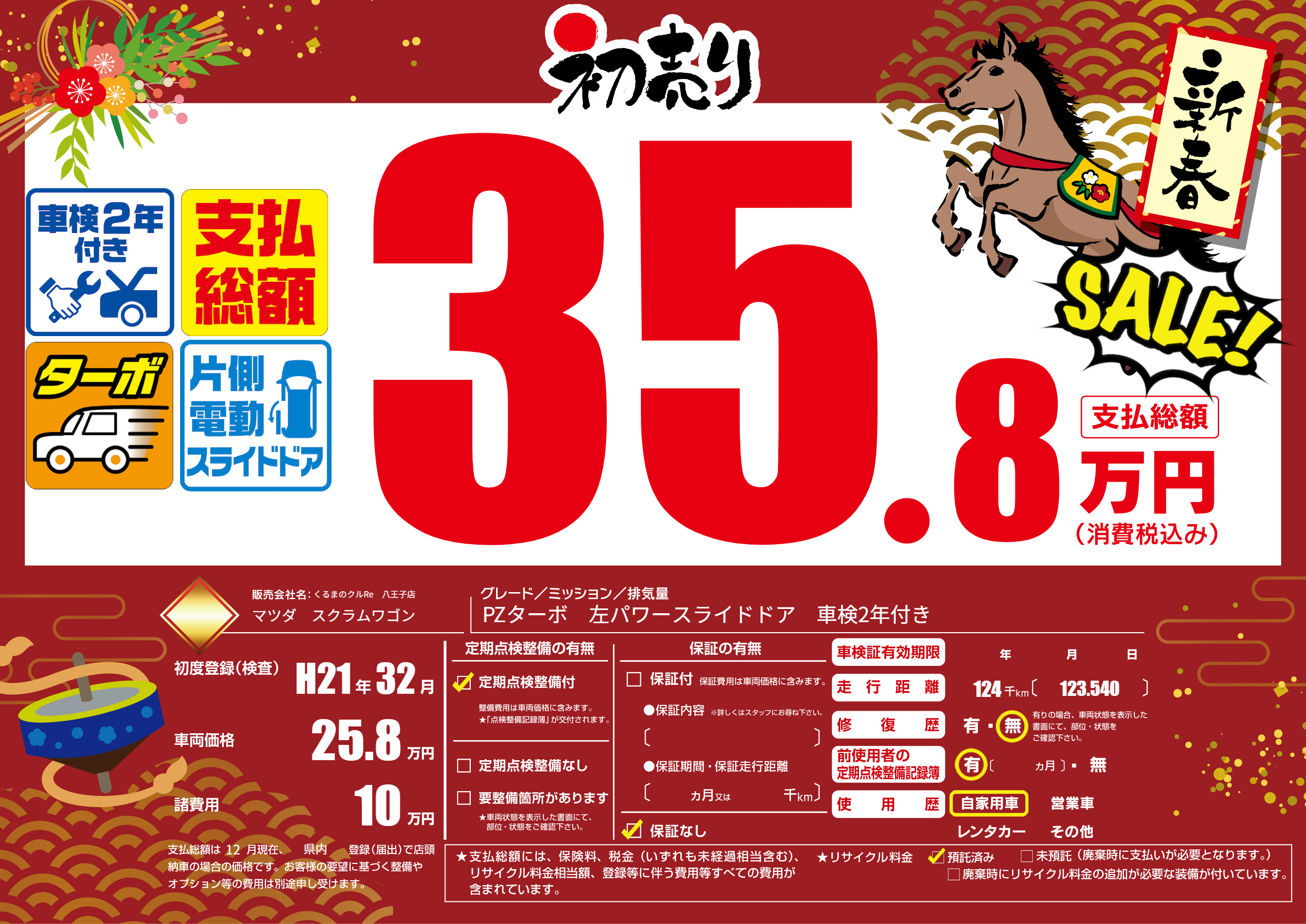 | 走行キロ | 12.4万km | 初年度登録 | H21年32月 |