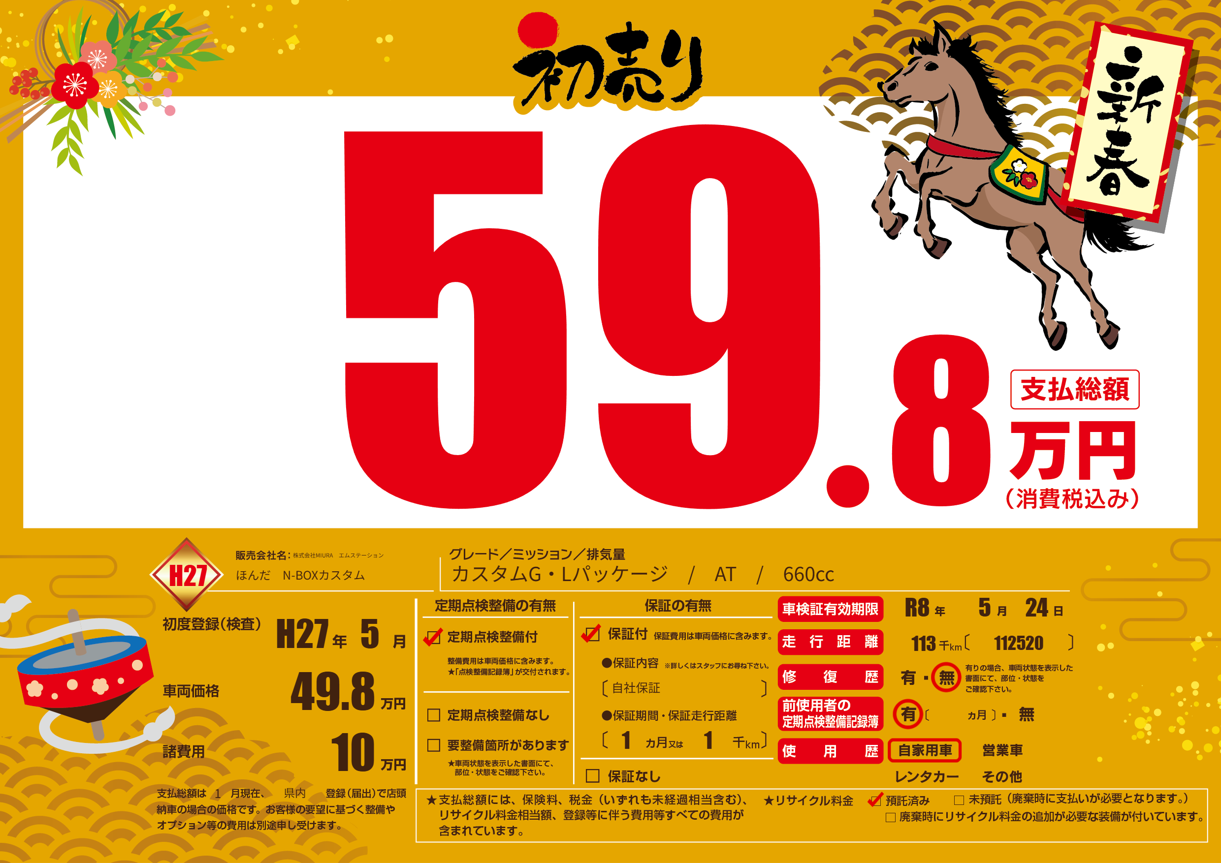 | 車名 | ほんだ N-BOXカスタム | グレード ミッション 排気量 |