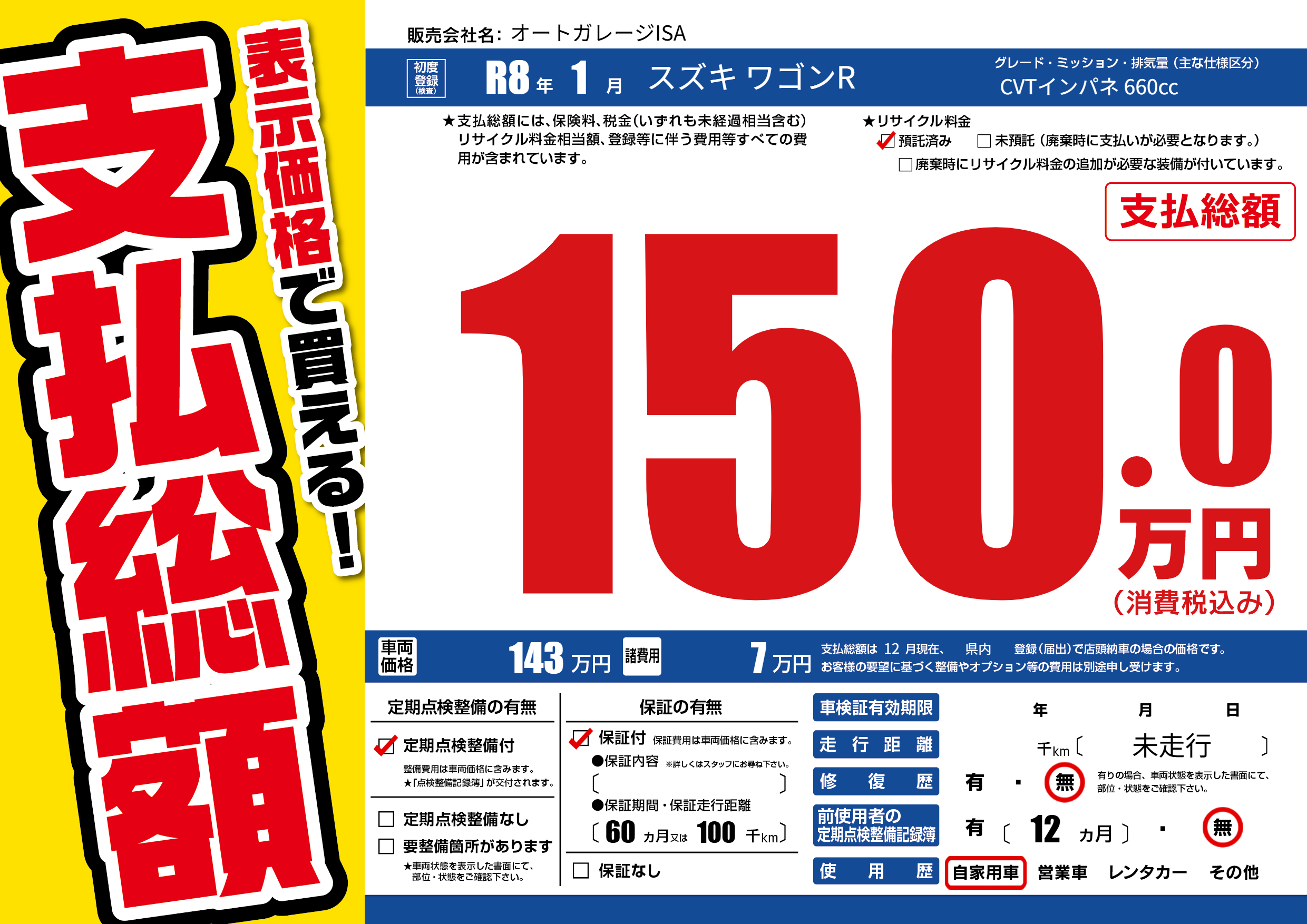 | 初年度登録 | R8年1月 | ||