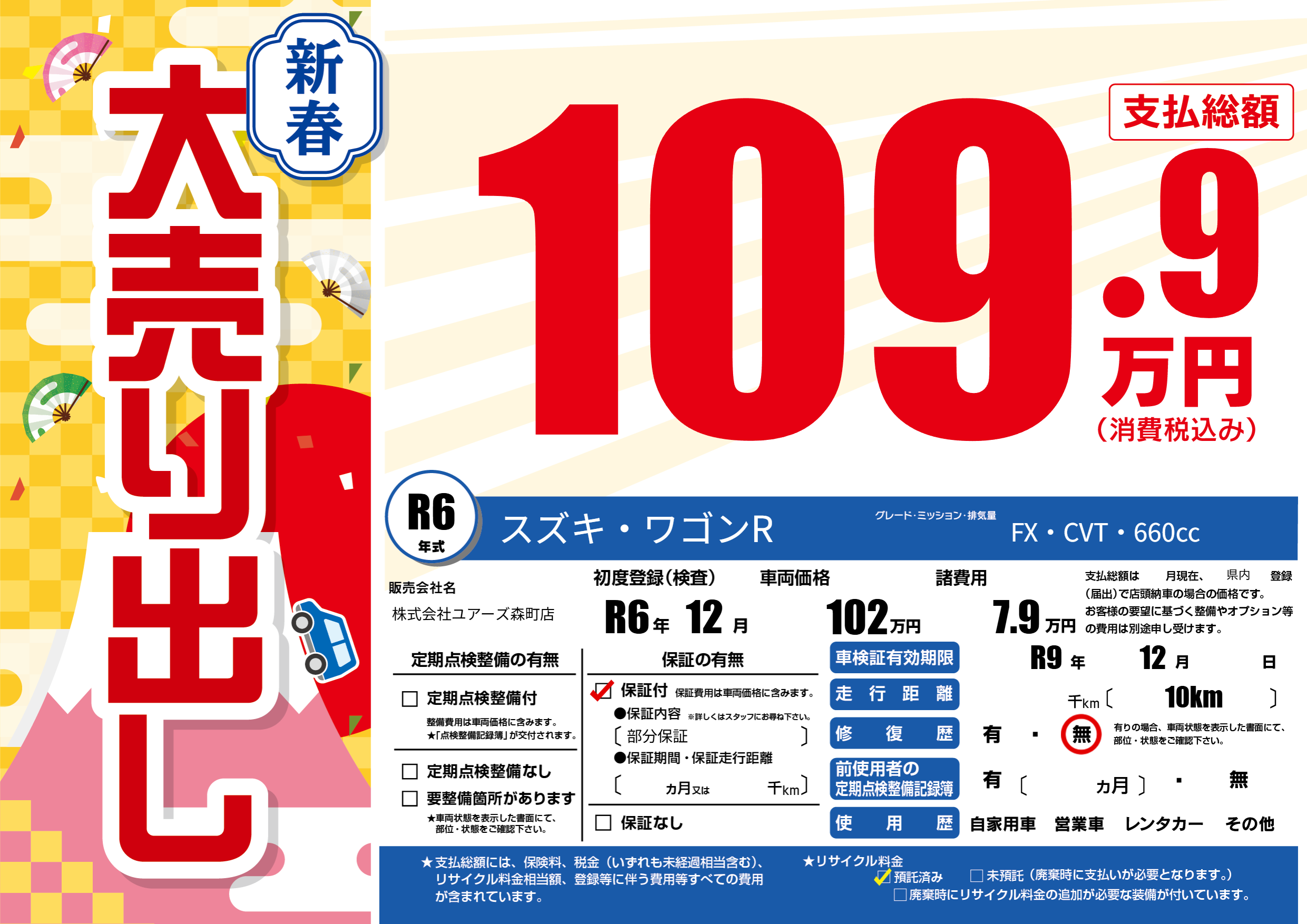 なし | 車検制限 | R9年12月---月 |