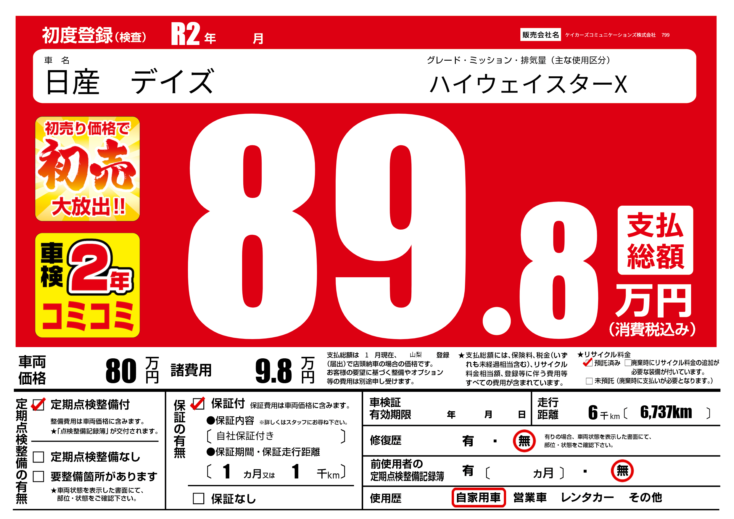 | 初年度登録 | R2年 | ||