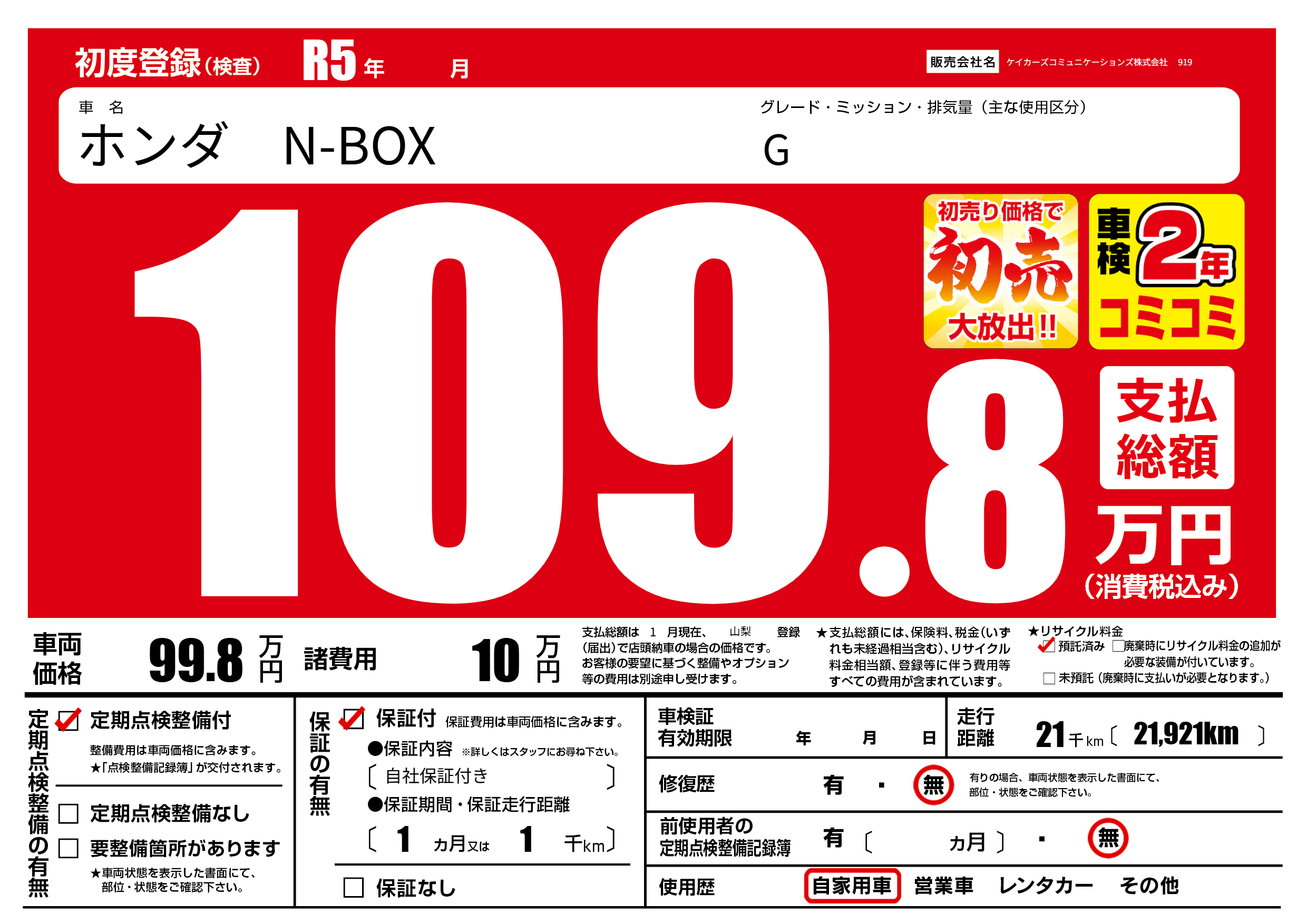 | 定期点検整備 | 定期点検整備あり | ||