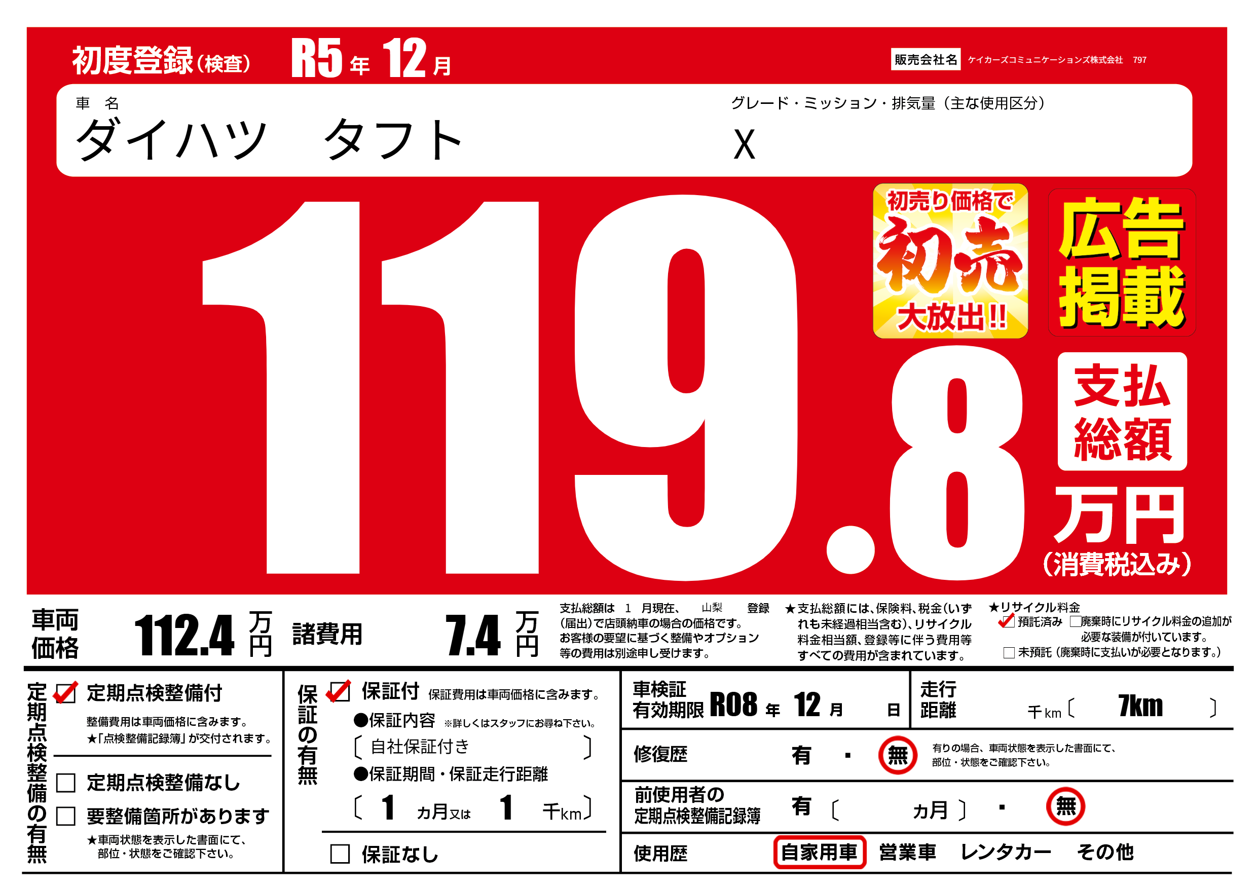 | 走行キロ | - | 初年度登録 | R5年12月 |