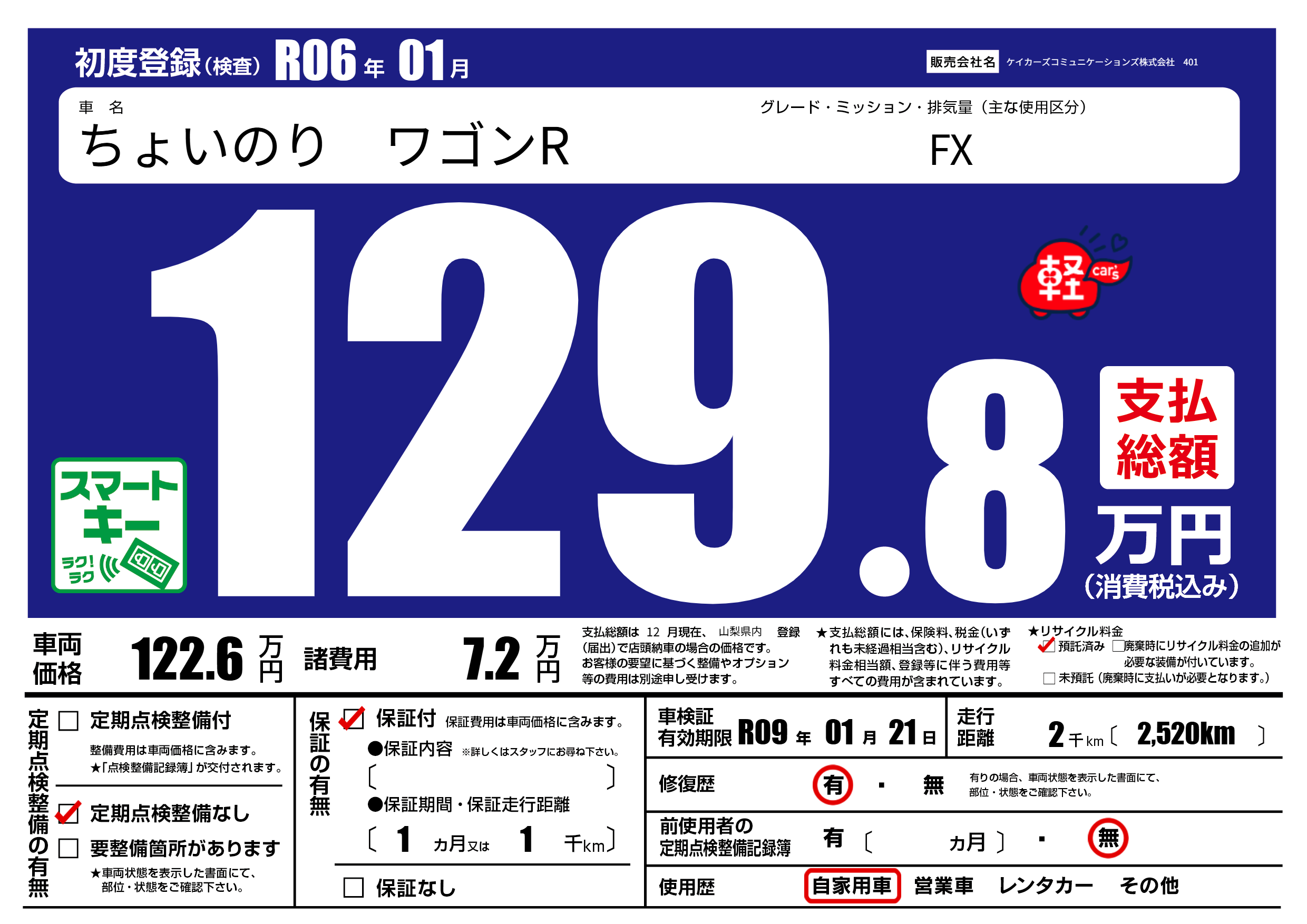 | 定期点検整備 | 定期点検整備なし | ||