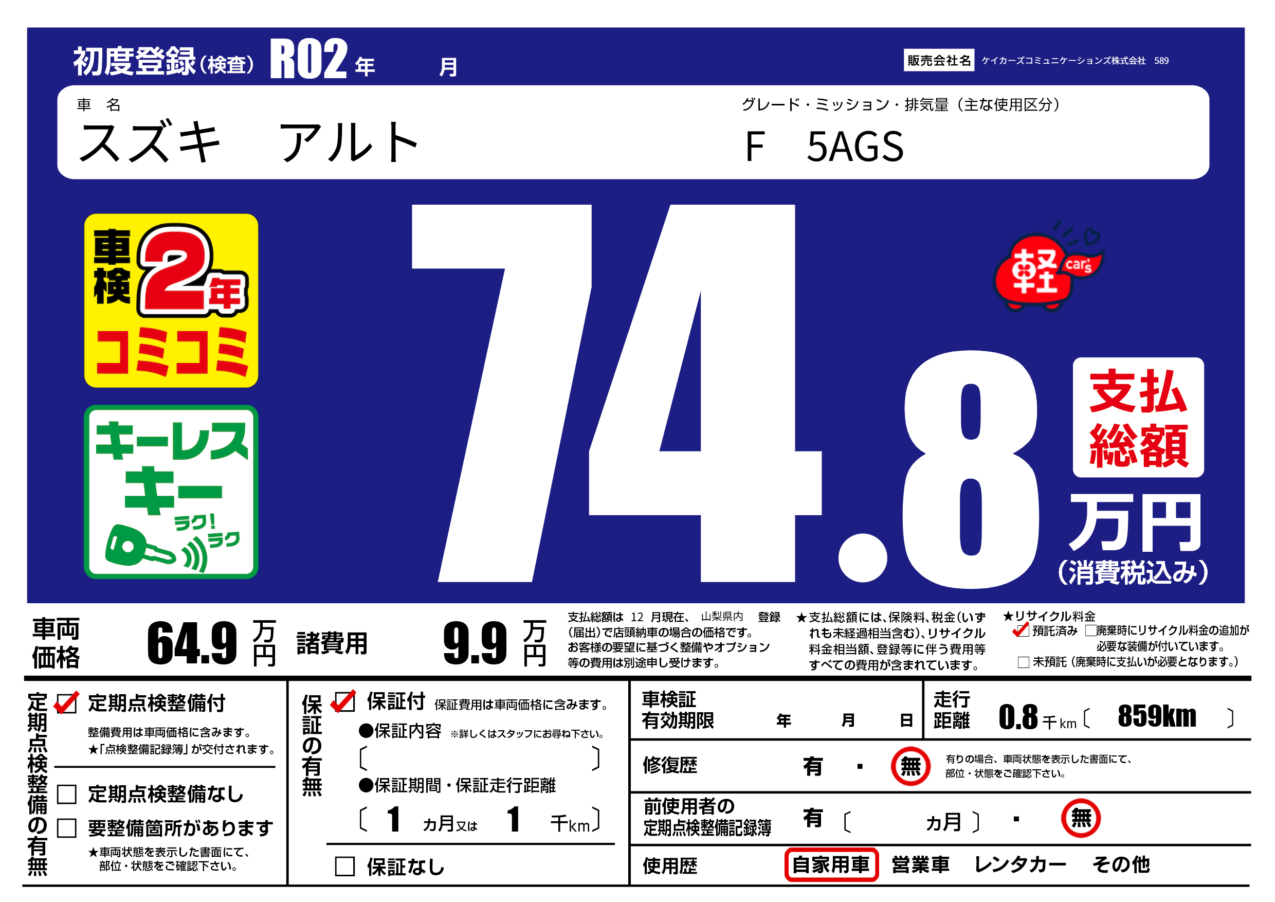 | 定期点検整備 | 定期点検整備あり | ||
