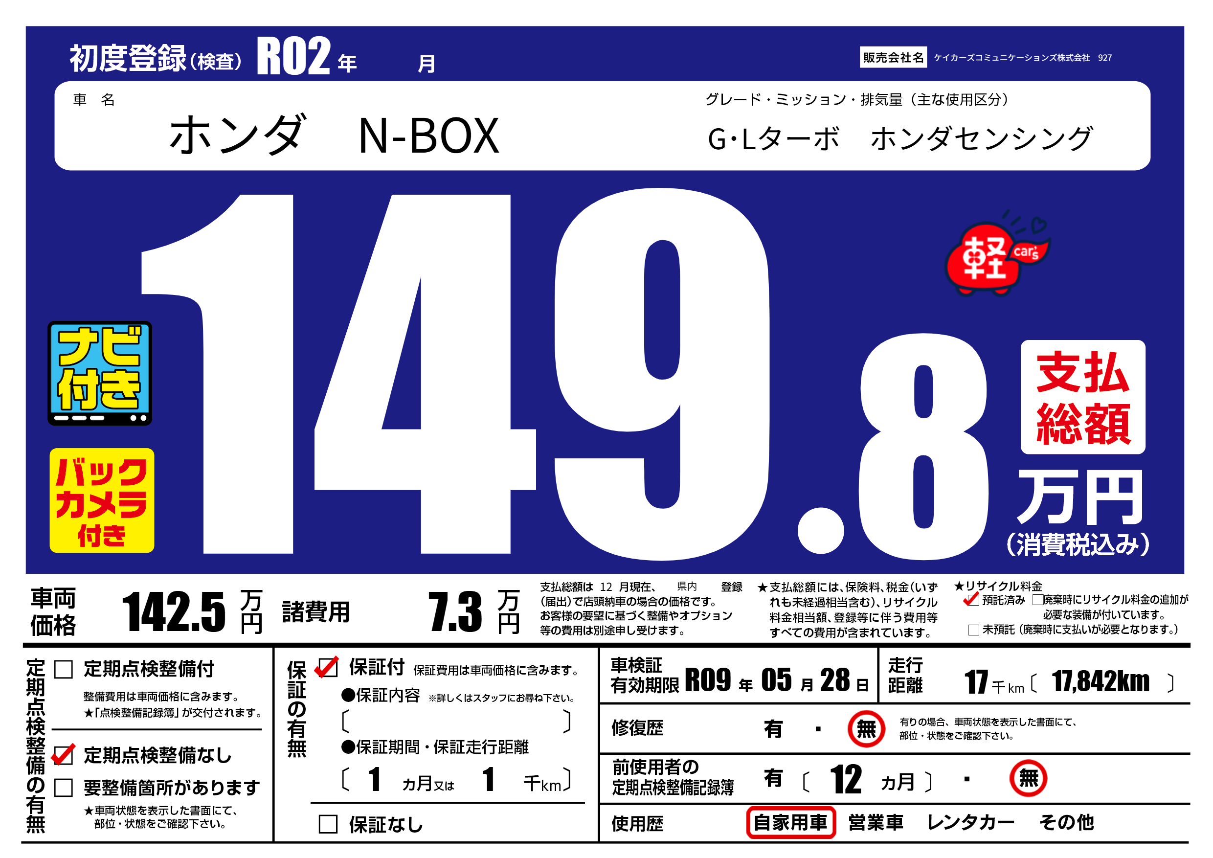 | 定期点検整備 | 定期点検整備なし | ||