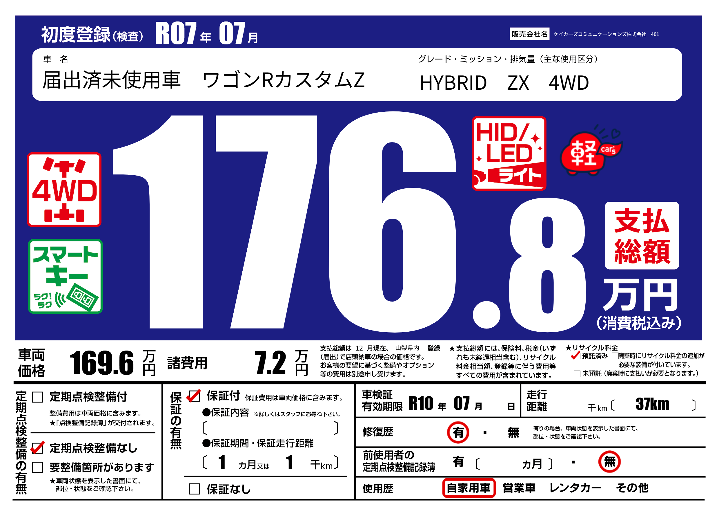 なし | 車検制限 | R10年07月---月 |