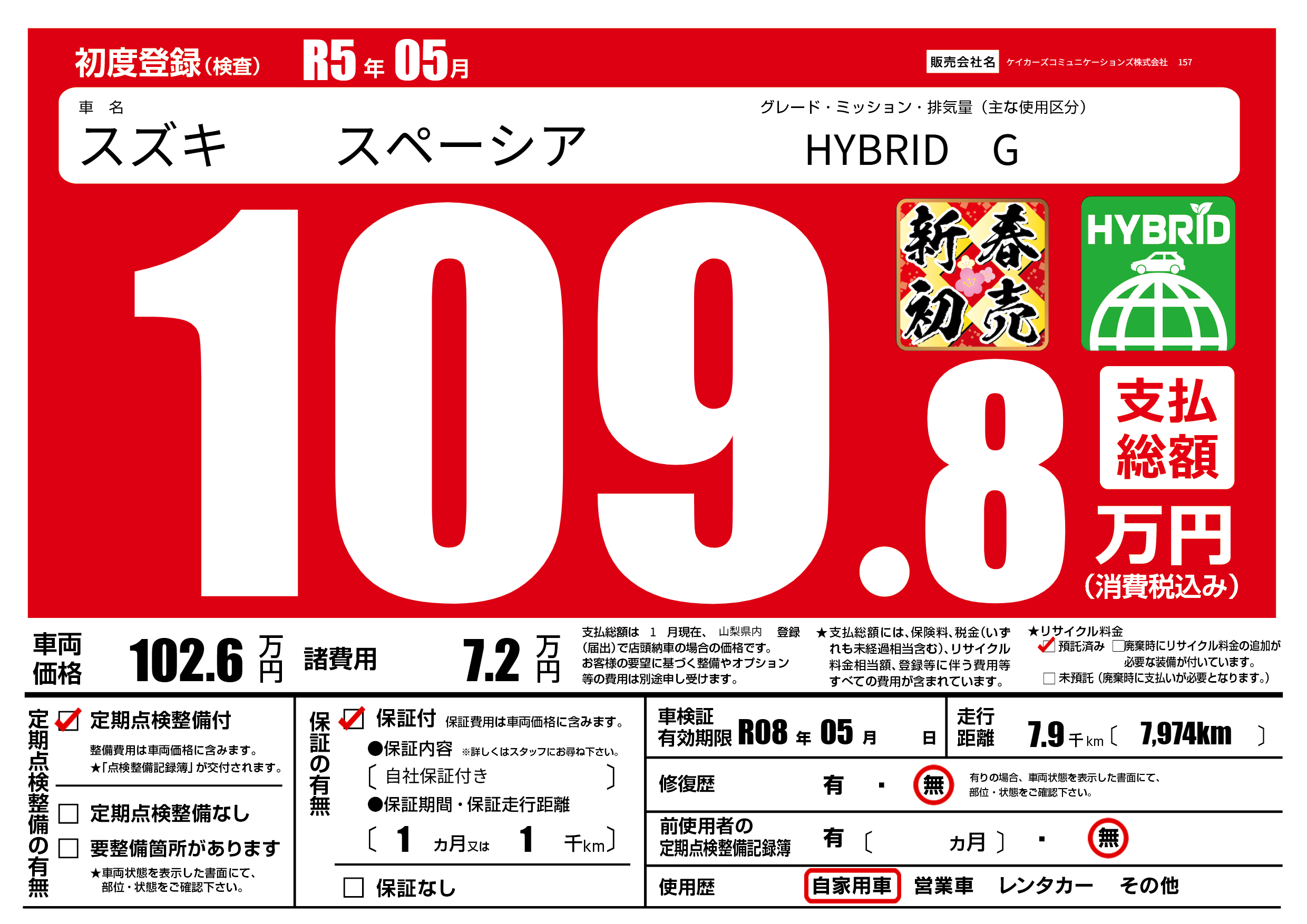 なし | 車検制限 | R08年05月---月 |