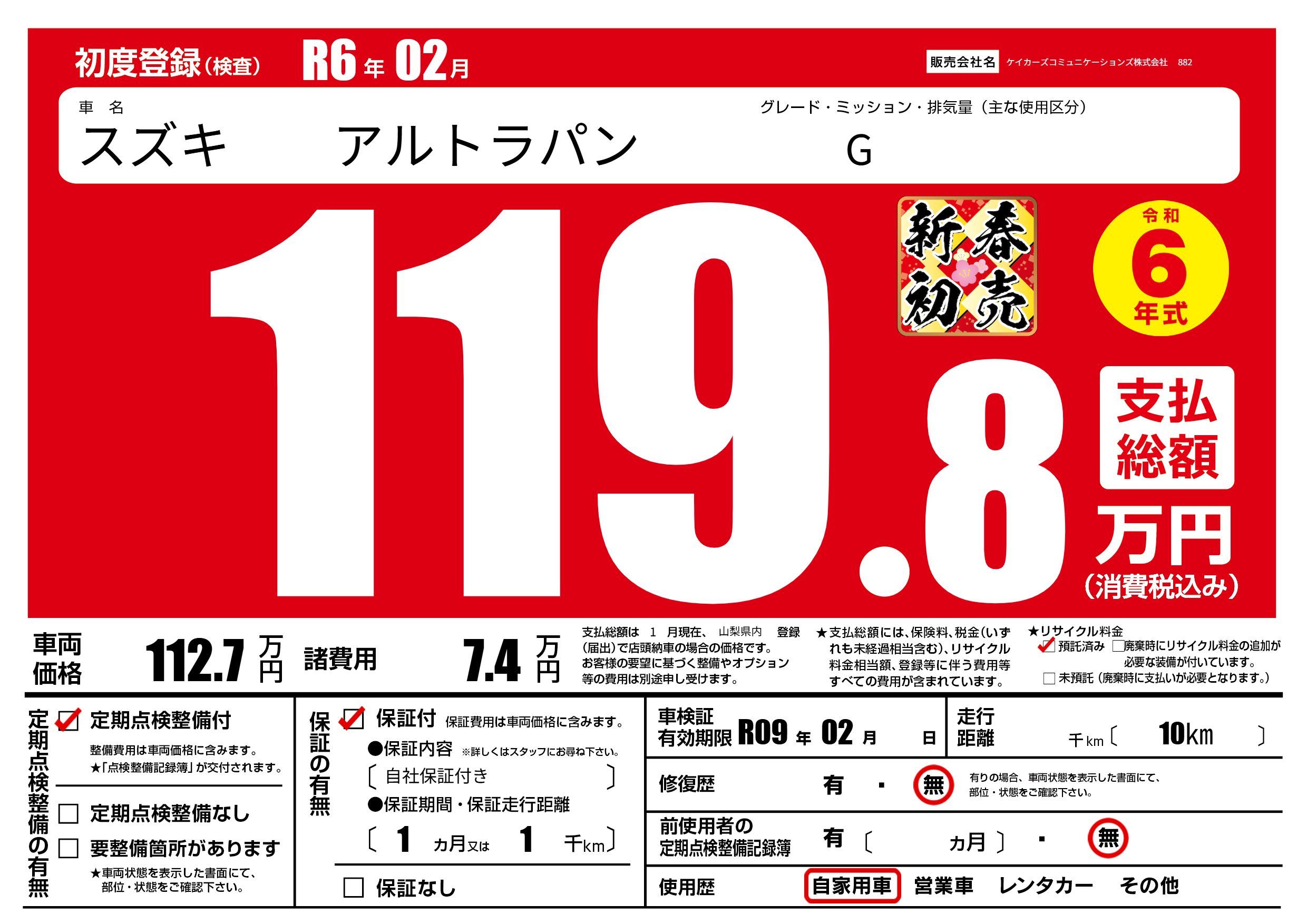 なし | 車検制限 | R09年02月---月 |