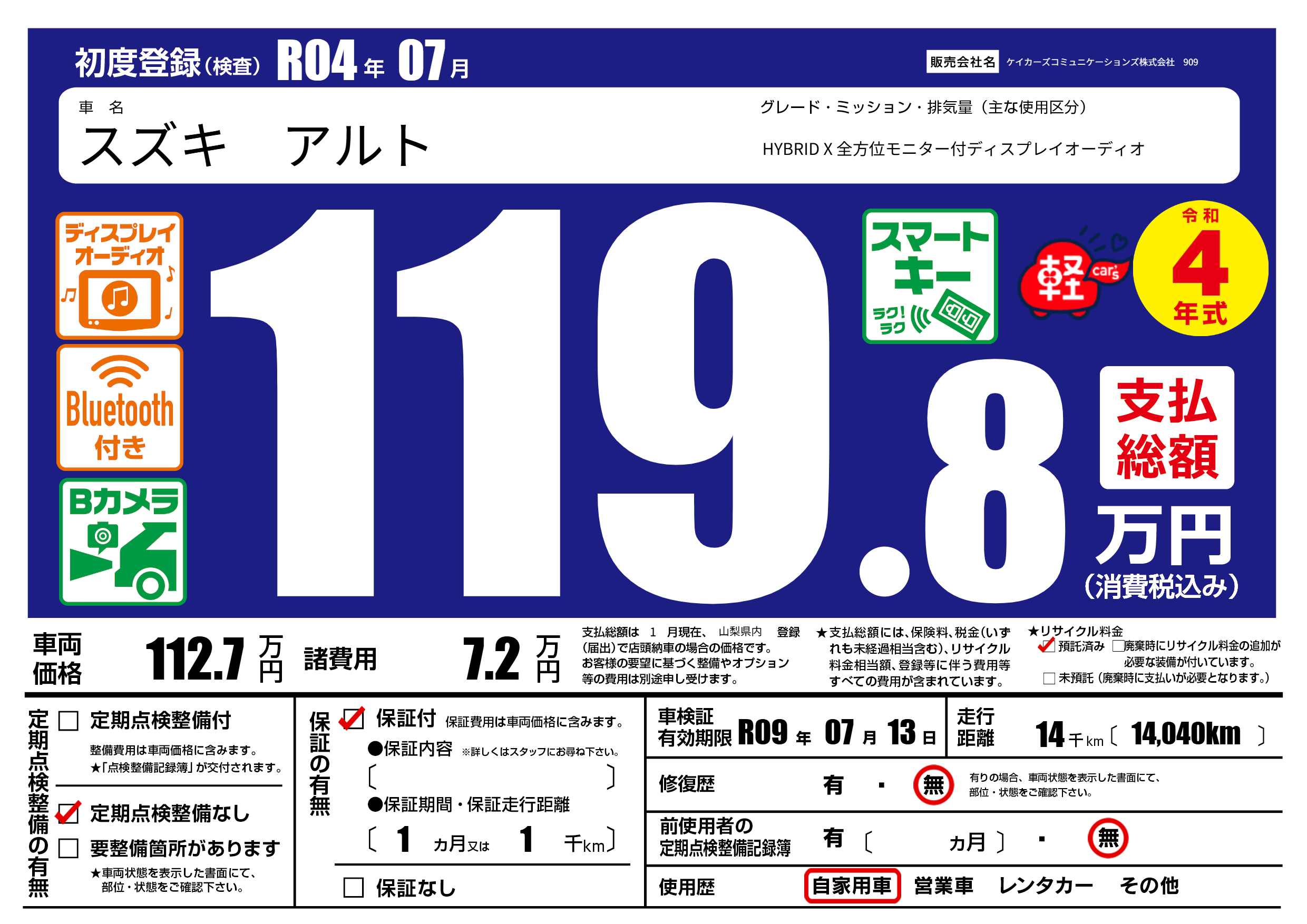 なし | 車検制限 | R09年07月13月 |