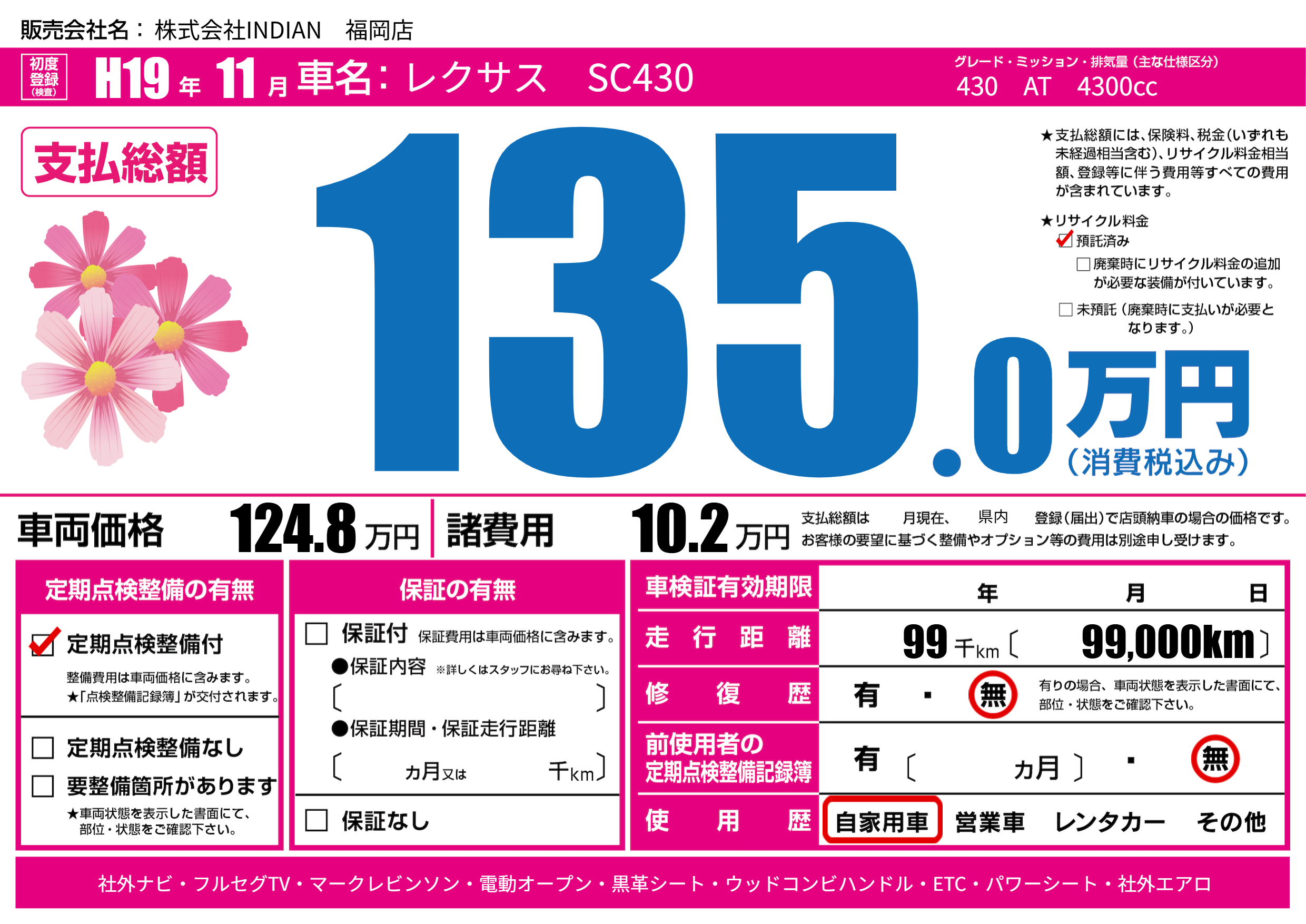 | リサイクル料金 預託済 |