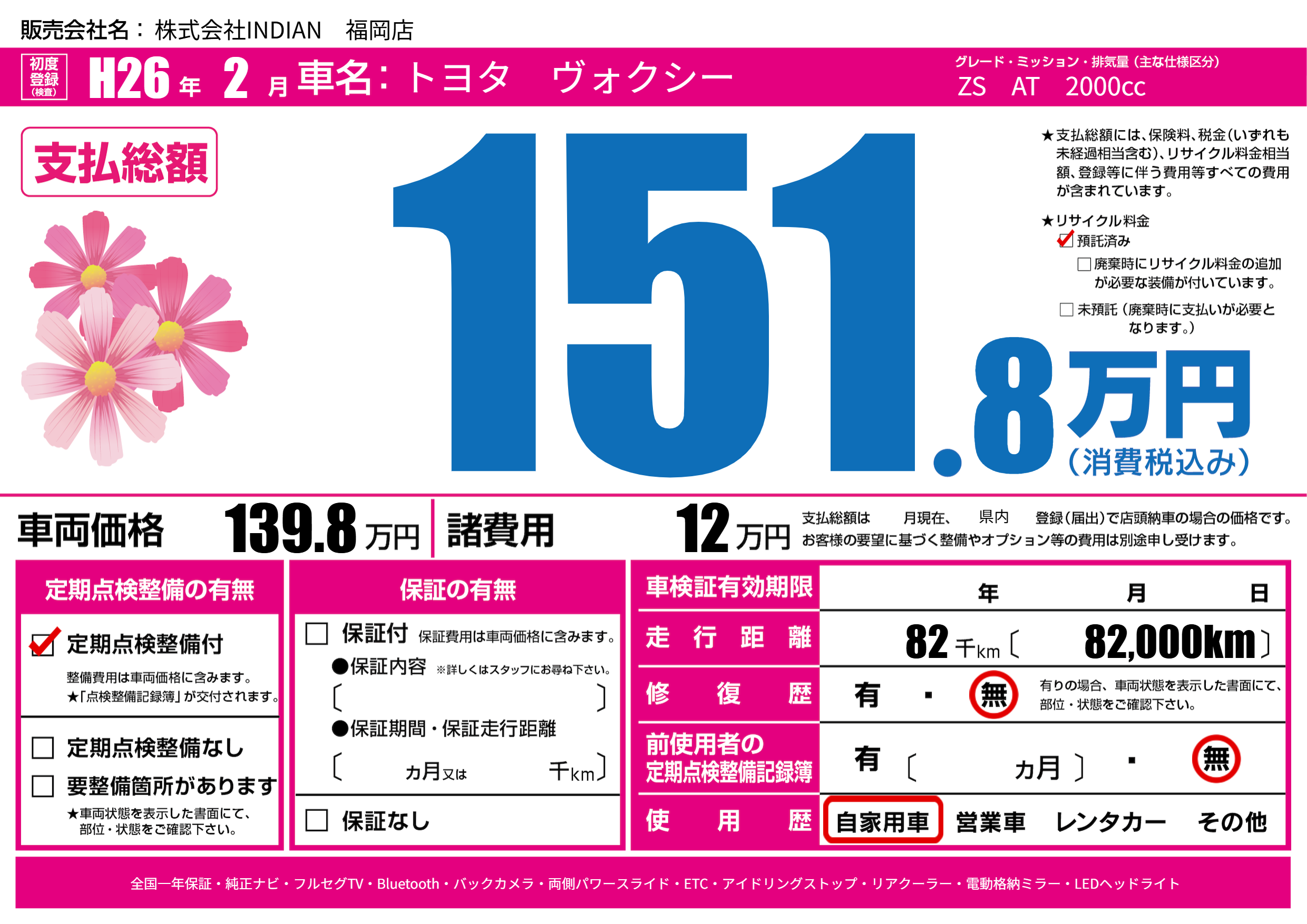 | 走行キロ | 8.2万km | ||