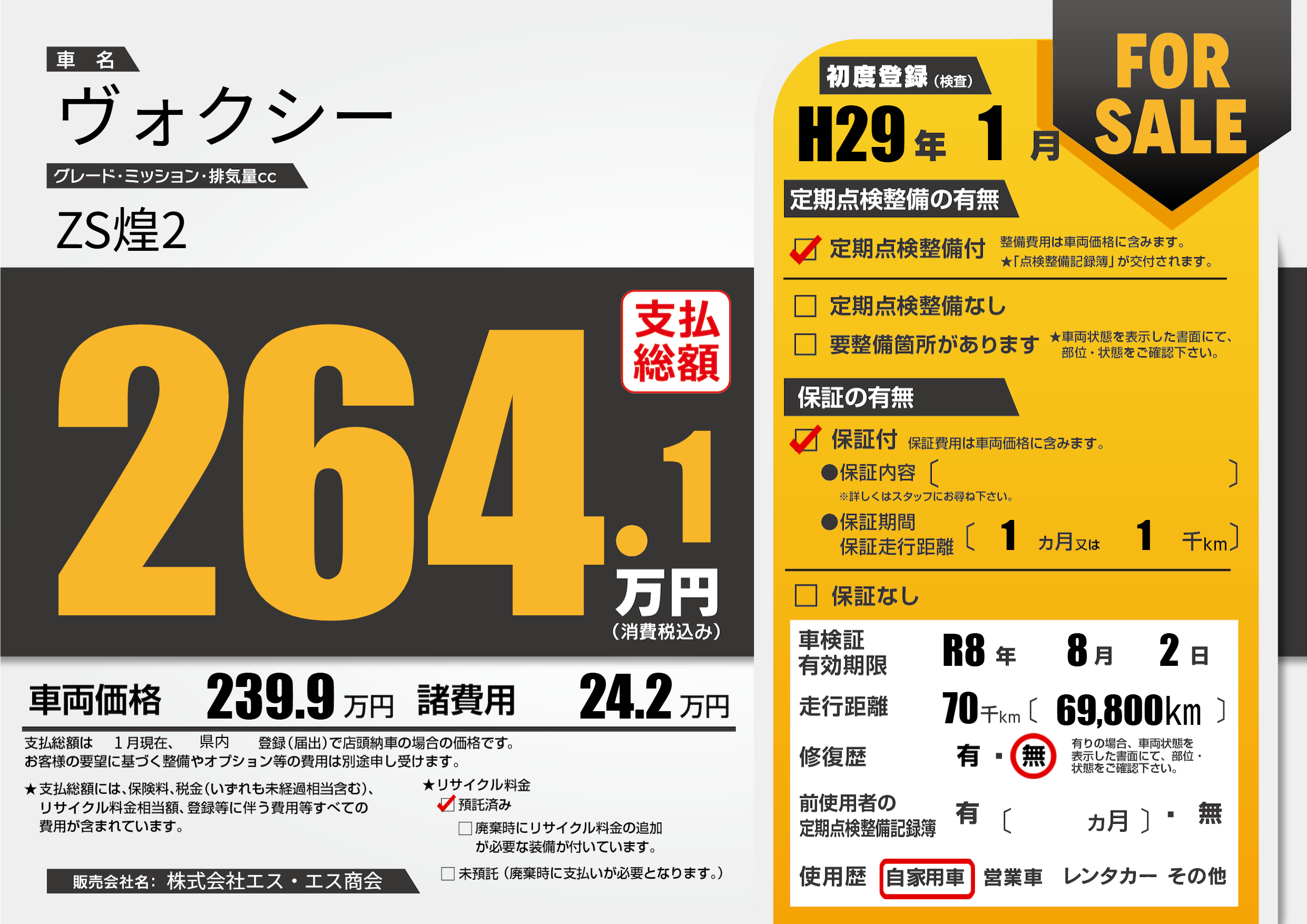 | 走行キロ | 7万km | 初年度登録 | H29年1月 |