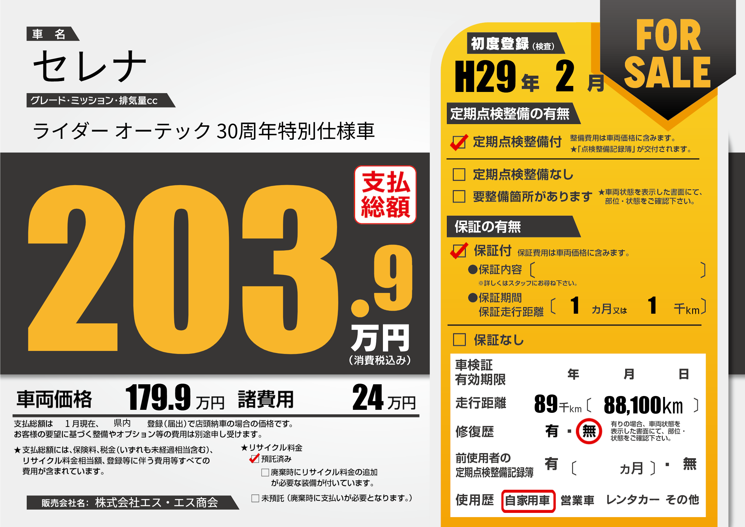 | 走行キロ | 8.9万km | 初年度登録 | H29年2月 |