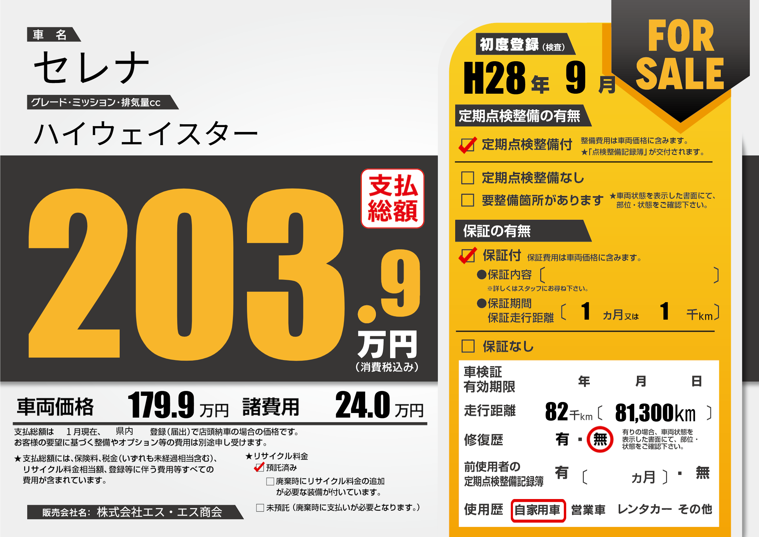 | 走行キロ | 8.2万km | 初年度登録 | H28年9月 |