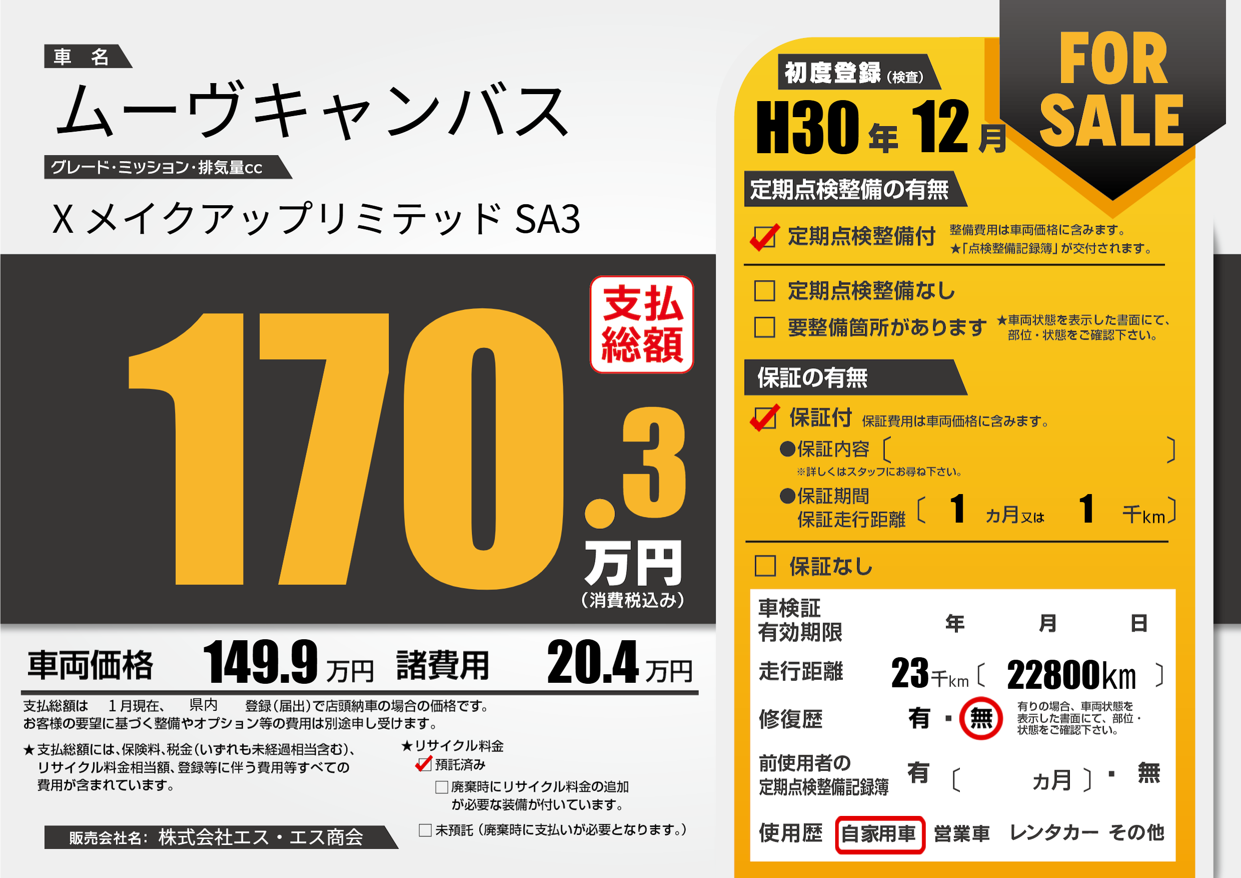| 初年度登録 | H30年12月 | ||