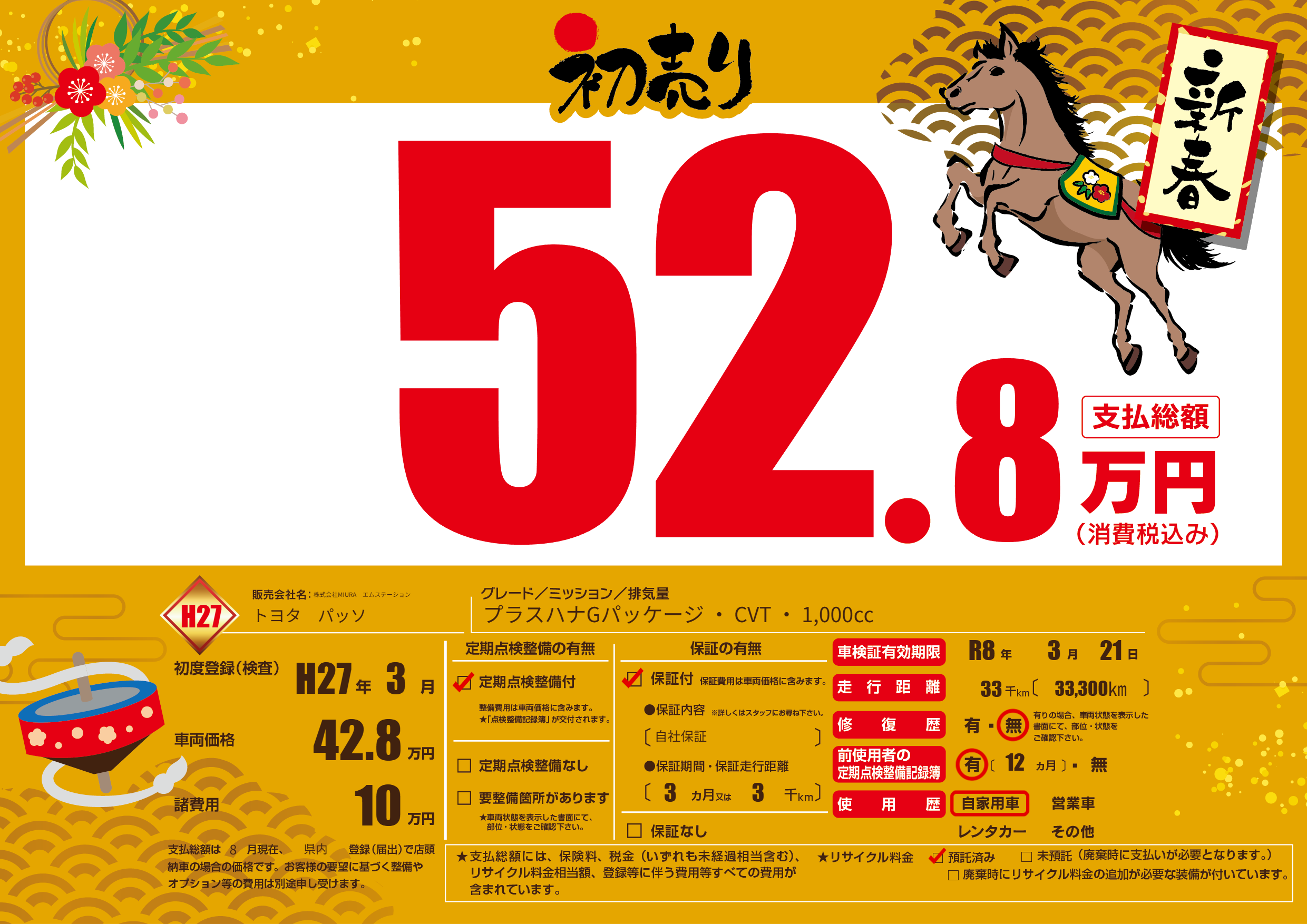 | 車名 | トヨタ パッソ | グレード ミッション 排気量 |
