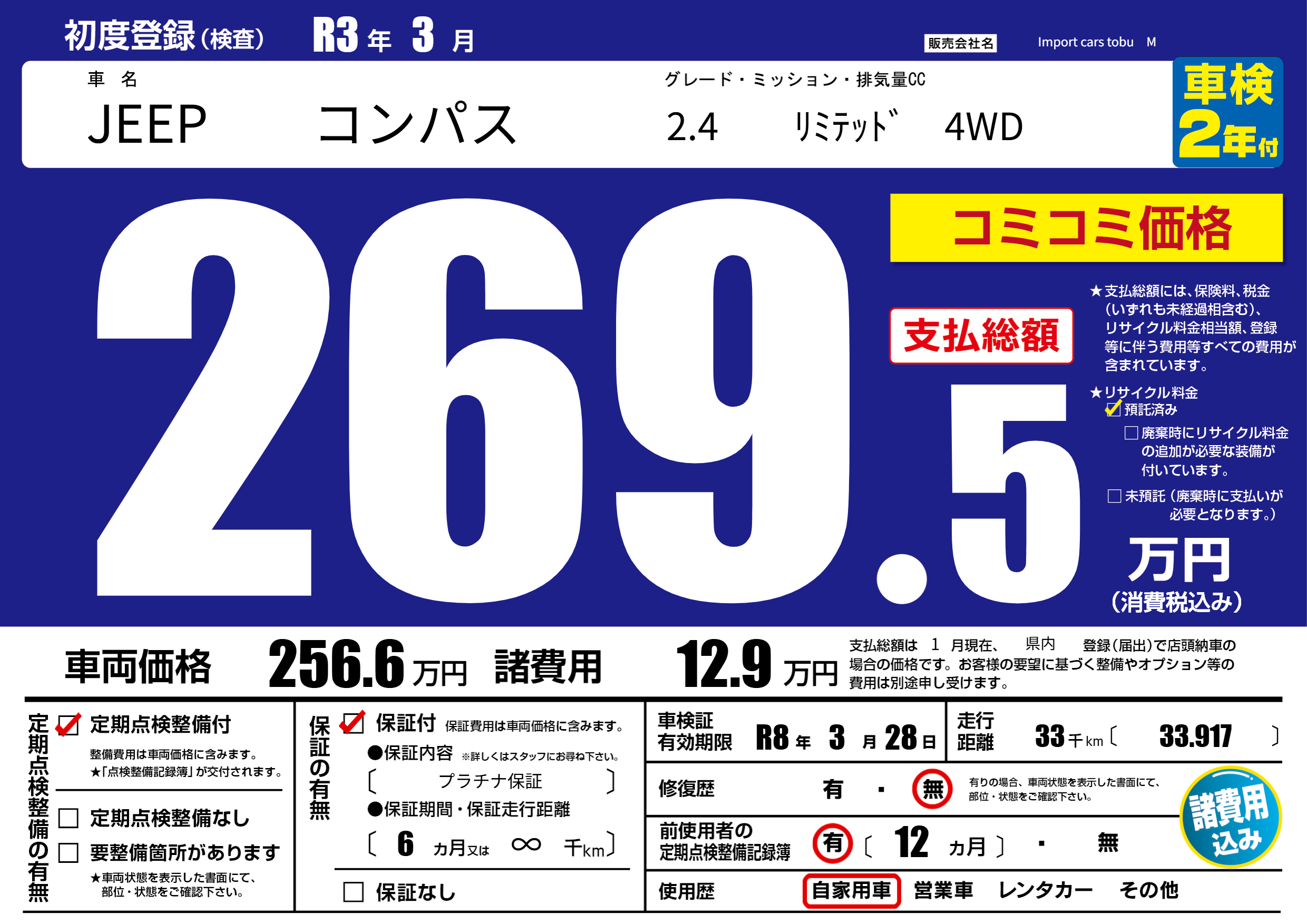車検制限 R8年 3月 28日