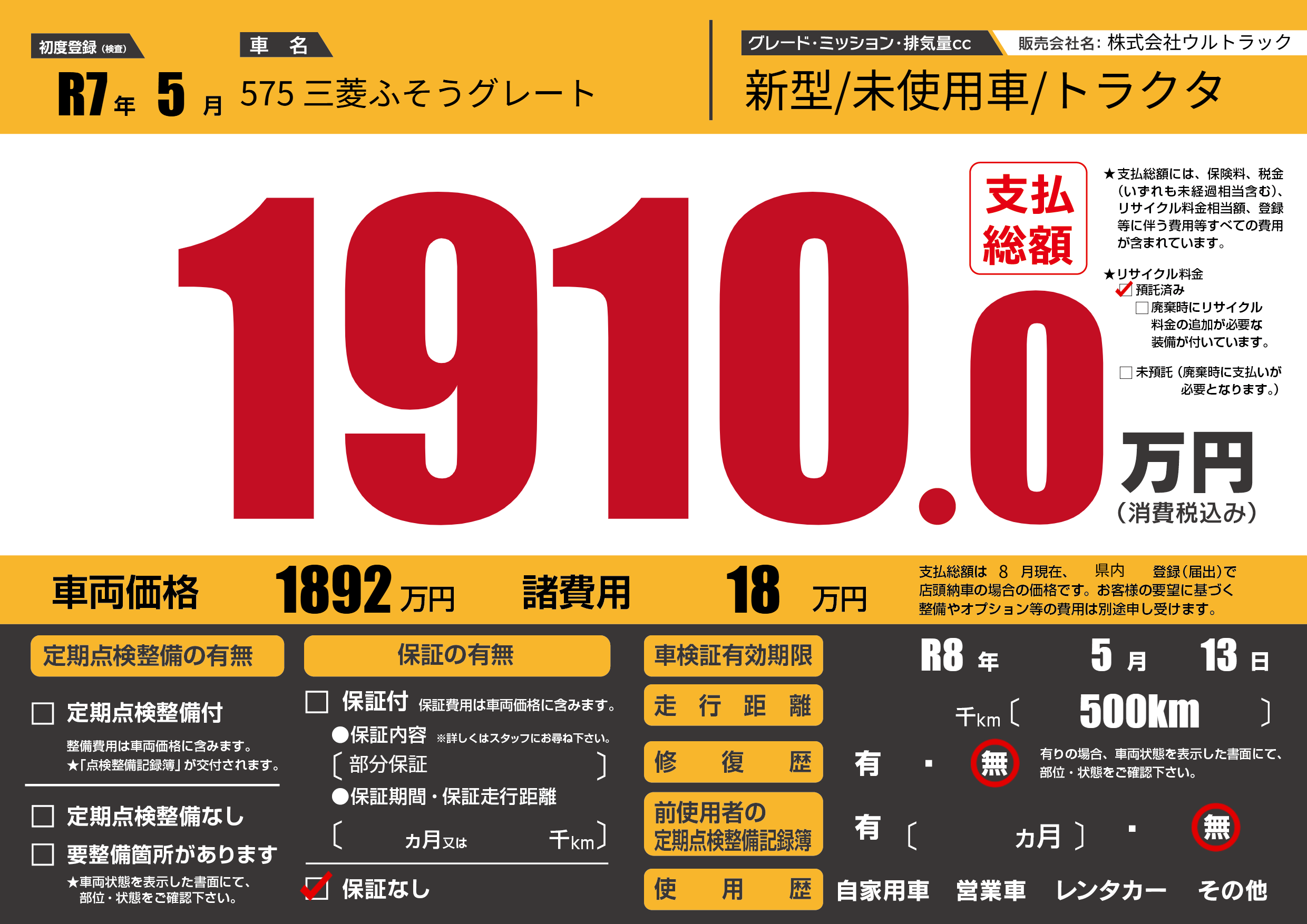 | 走行キロ | - | 初年度登録 | R7年5月 |