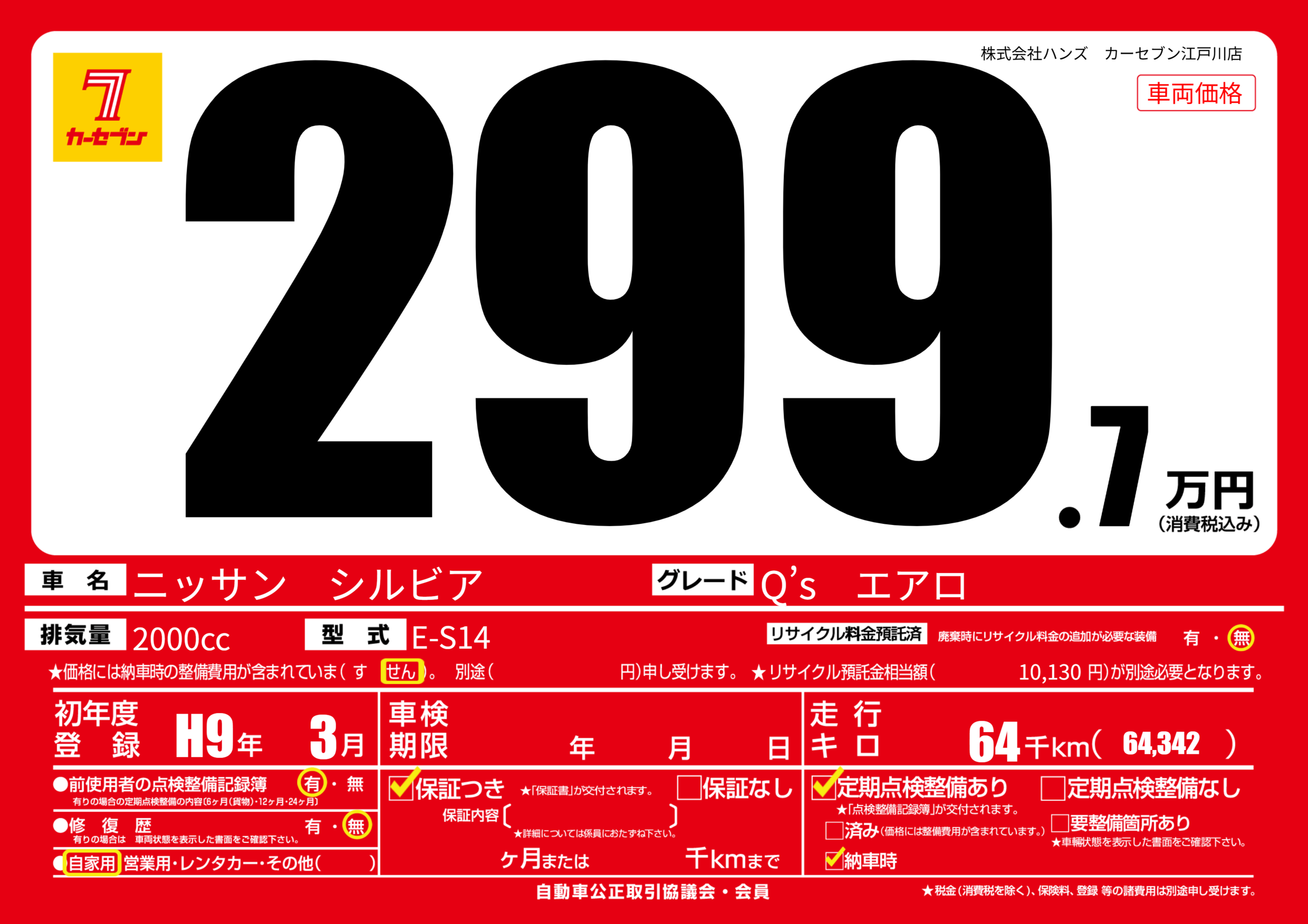 | 初年度登録 | H9年3月 | ||