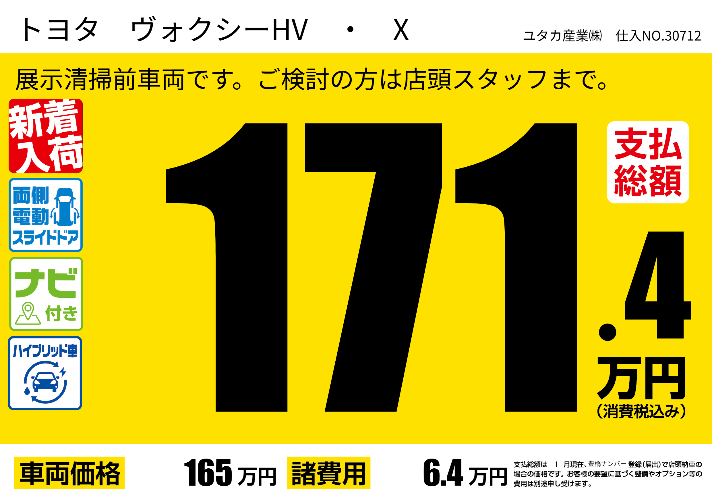 展示清掃前車両です。ご検討の方は店頭スタッフまで。 |