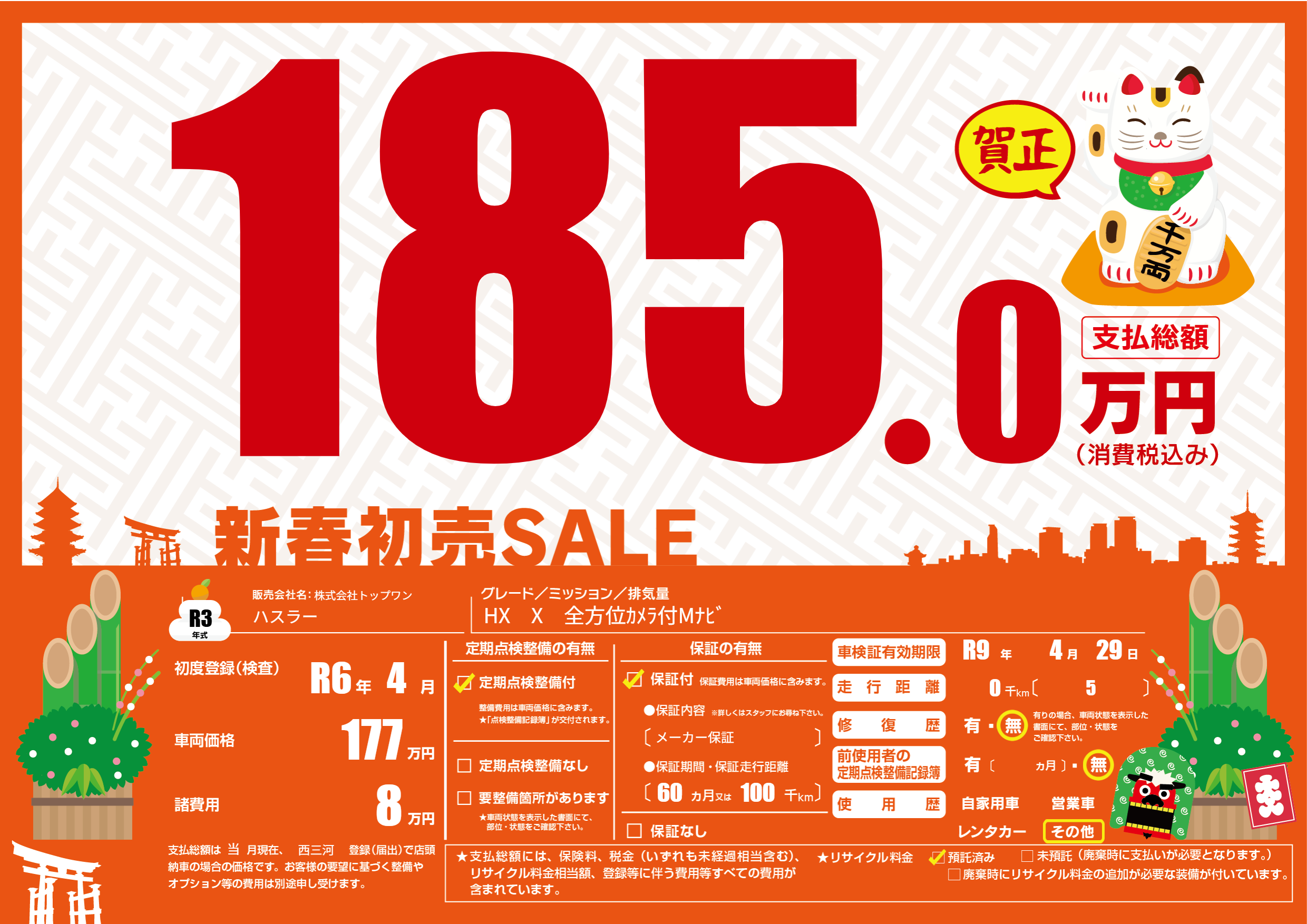 なし | 車検制限 | R9 年4月29月 |
