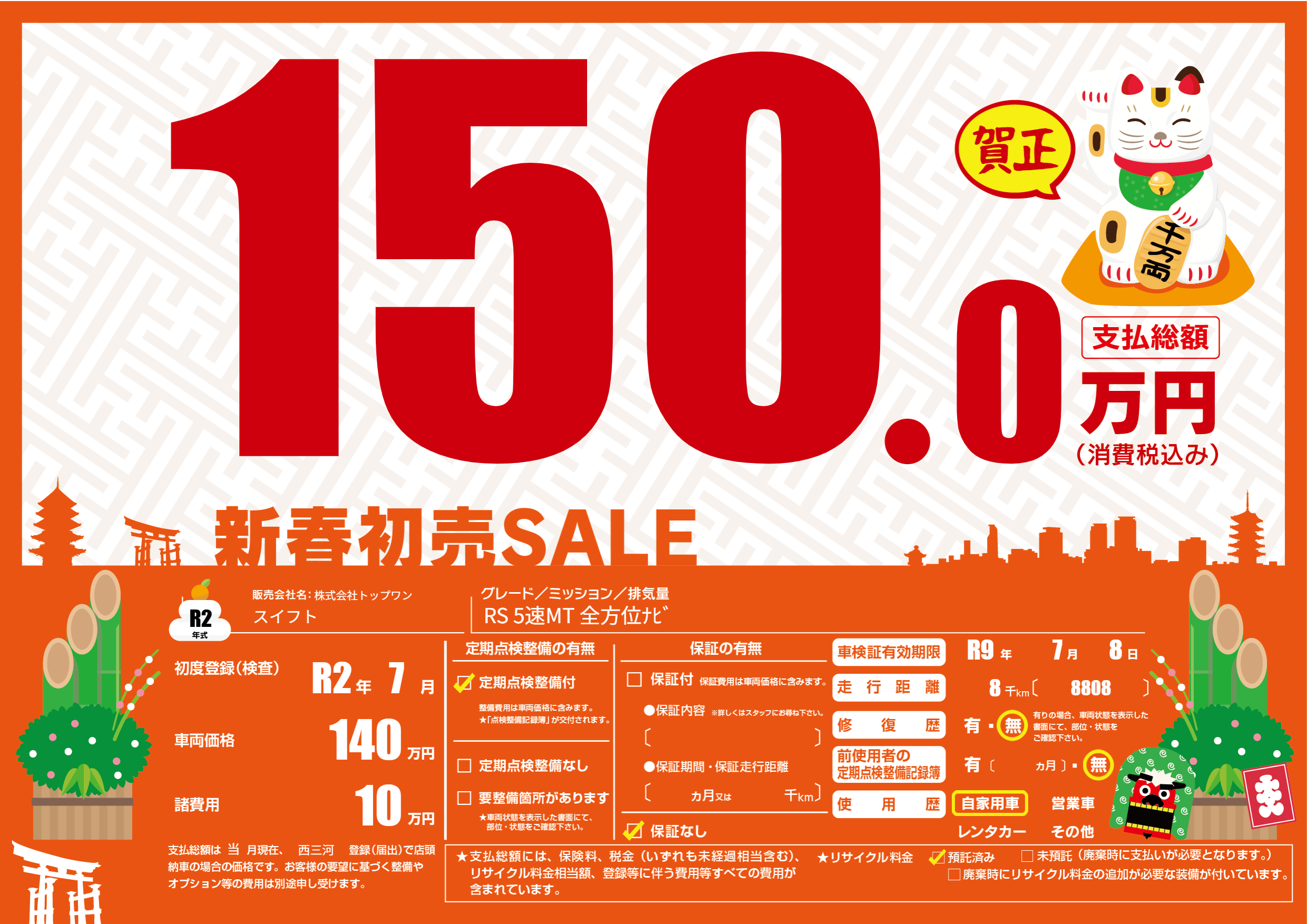 | 走行キロ | 0.8万km | 初年度登録 | R2年7月 |