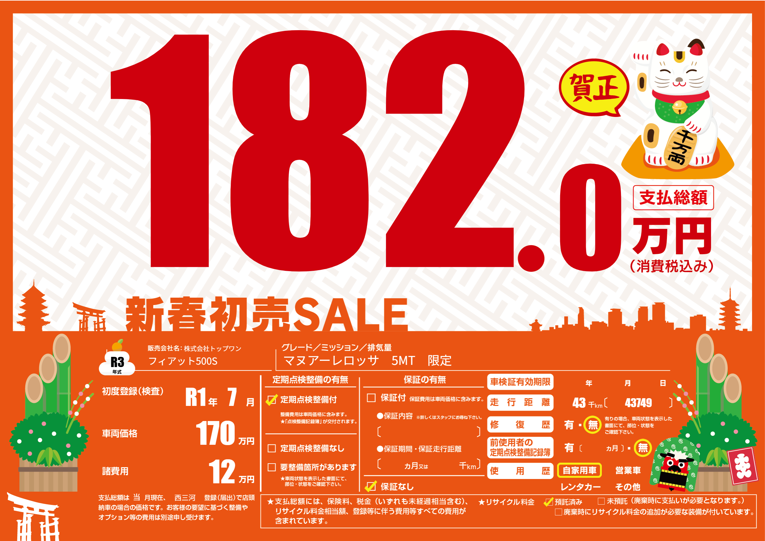 | 車名 | フィアット500S | グレード ミッション 排気量 |