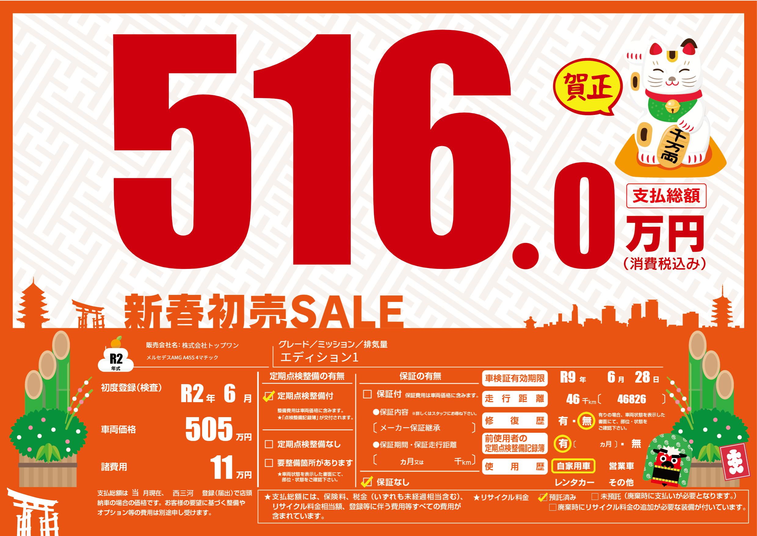 | 車名 | メルセデスAMG A45S 4マチック | グレード ミッション 排気量 |