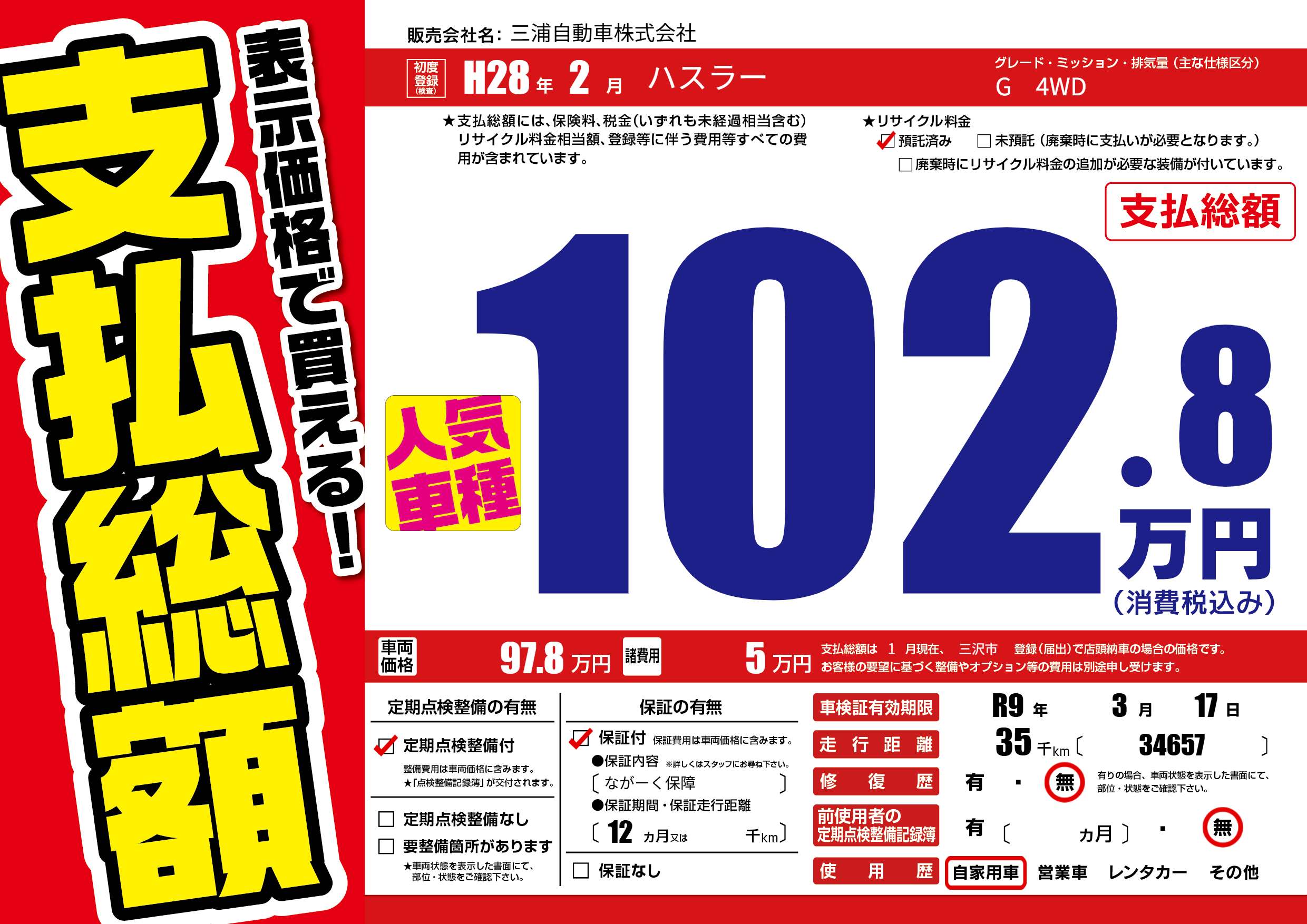 なし | 車検制限 | R9年3月17月 |