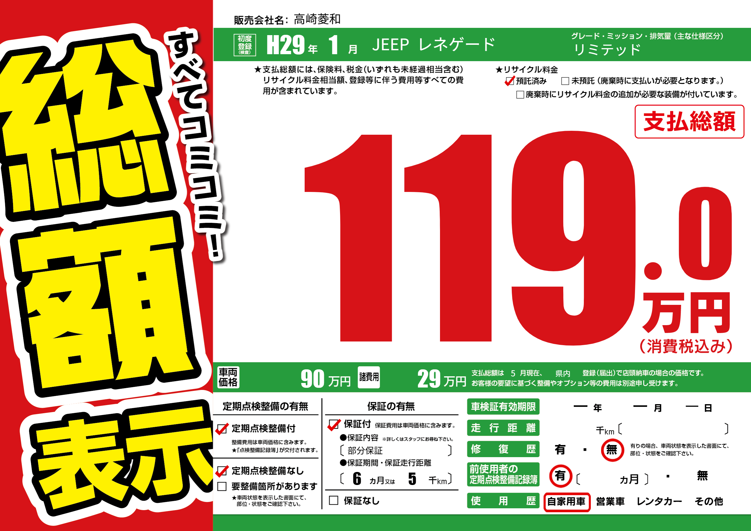| 定期点検整備 | 定期点検整備あり 定期点検整備なし | ||