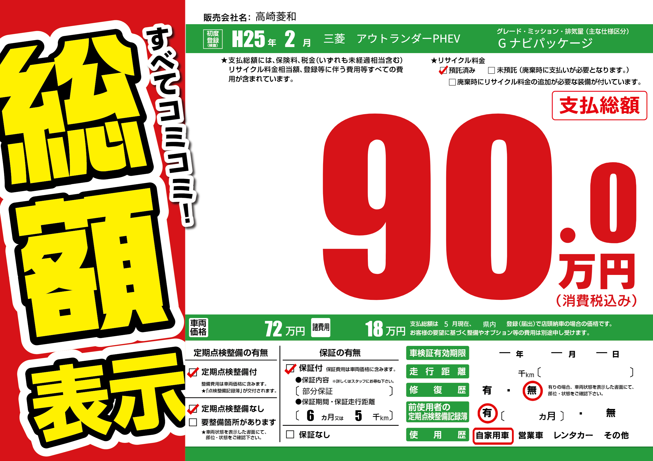 | 定期点検整備 | 定期点検整備あり 定期点検整備なし | ||