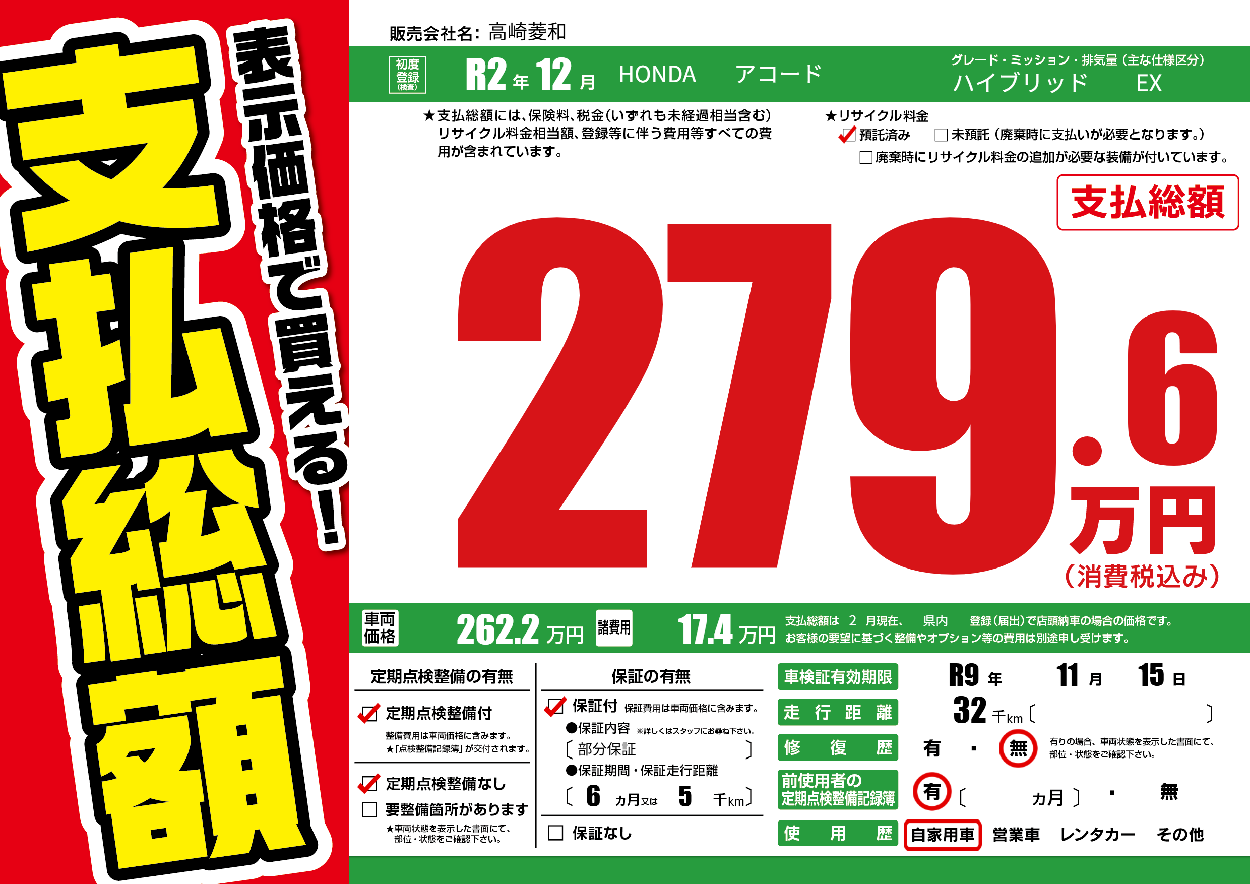 車検制限 R9年 11月 15日