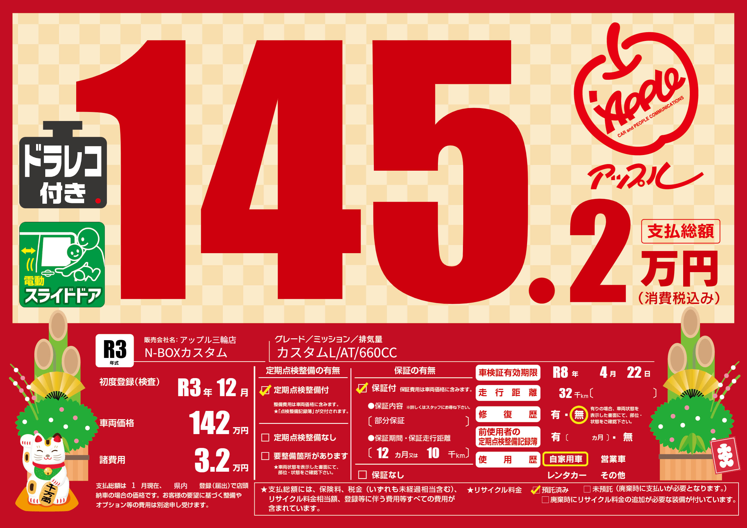 | 走行キロ | 3.2万km | 初年度登録 | R3年12月 |