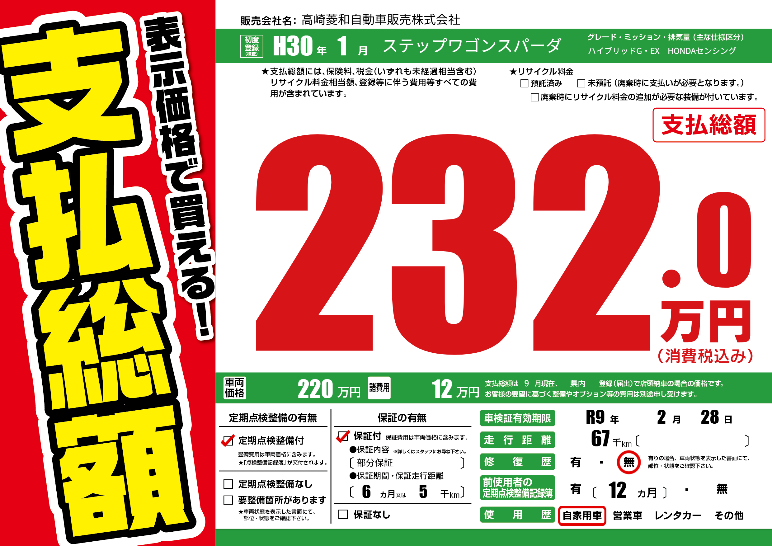 | 車検制限 | R9年 2月 28日 | ||