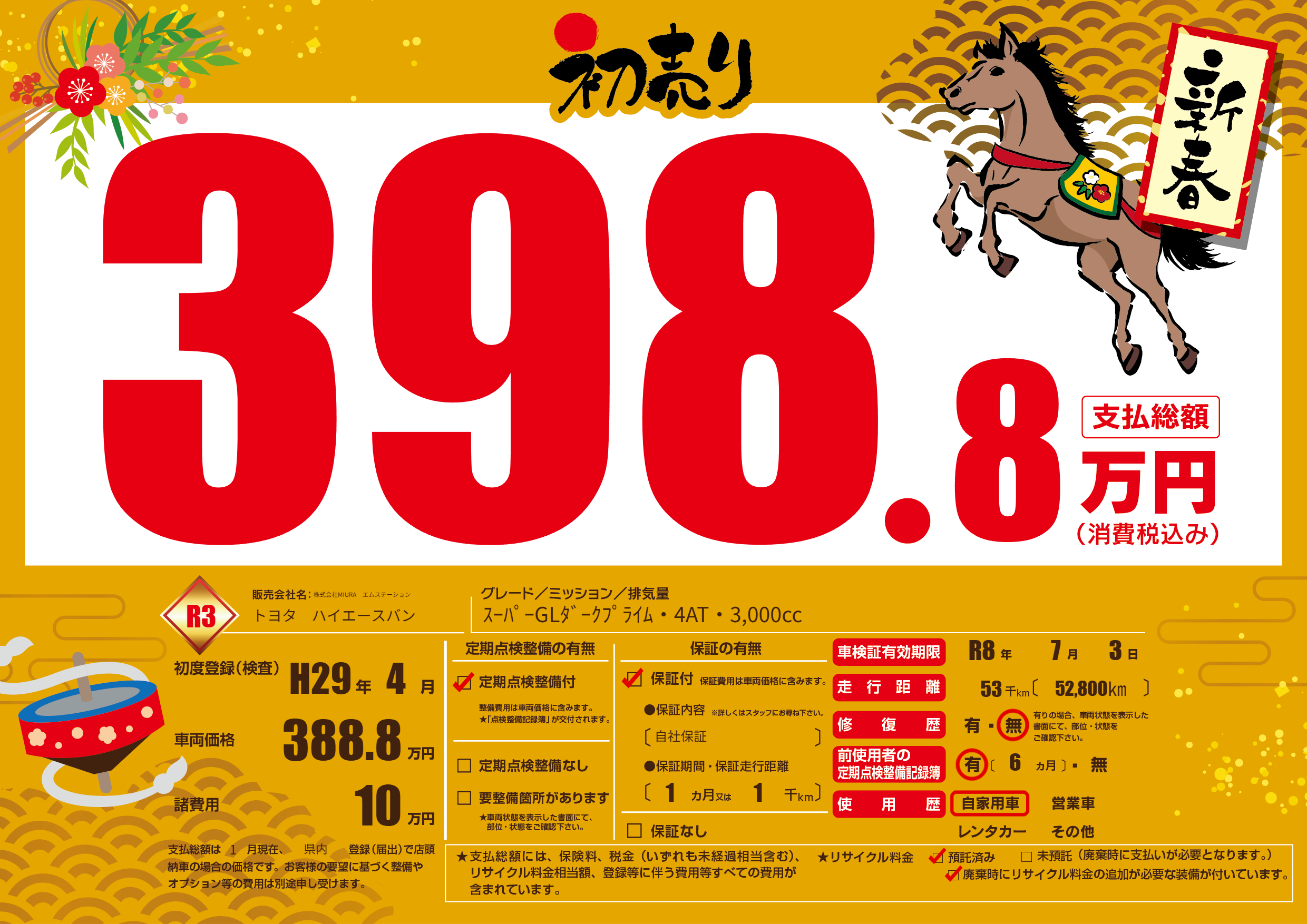 なし | 車検制限 | R8年7月3月 |