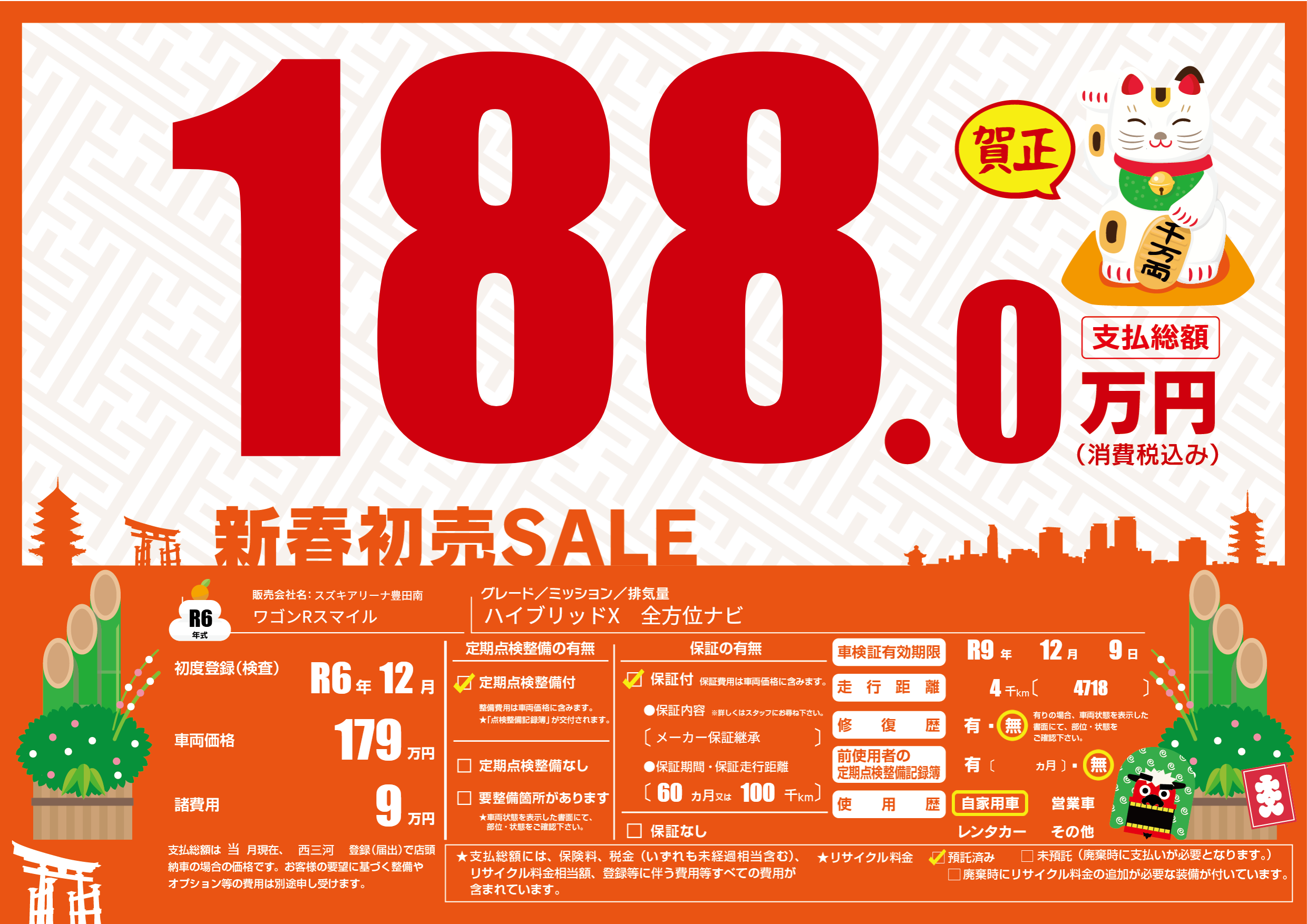 | 走行キロ | 0.4万km | 初年度登録 | R6年12月 |