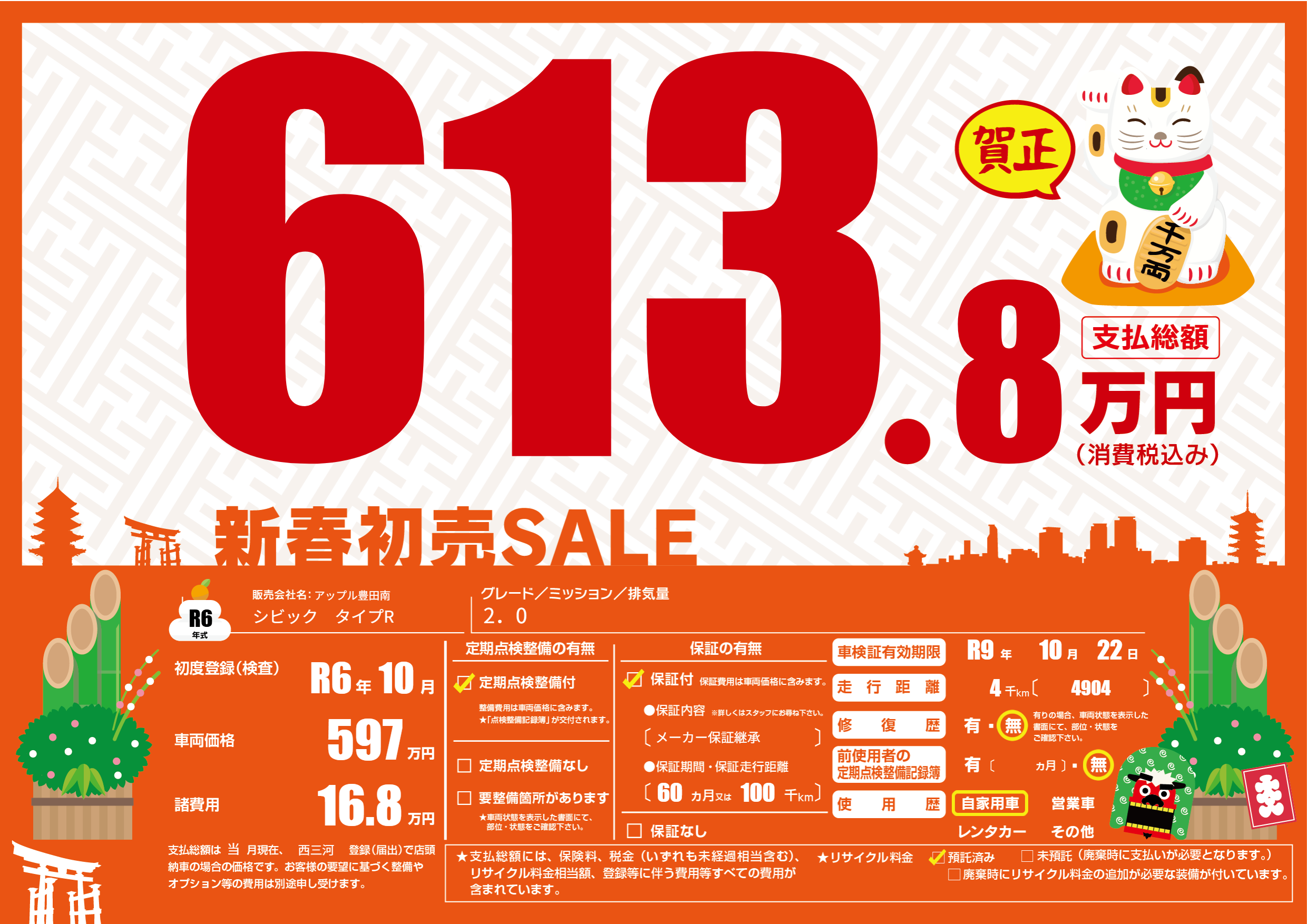 なし | 車検制限 | R9年10月22月 |