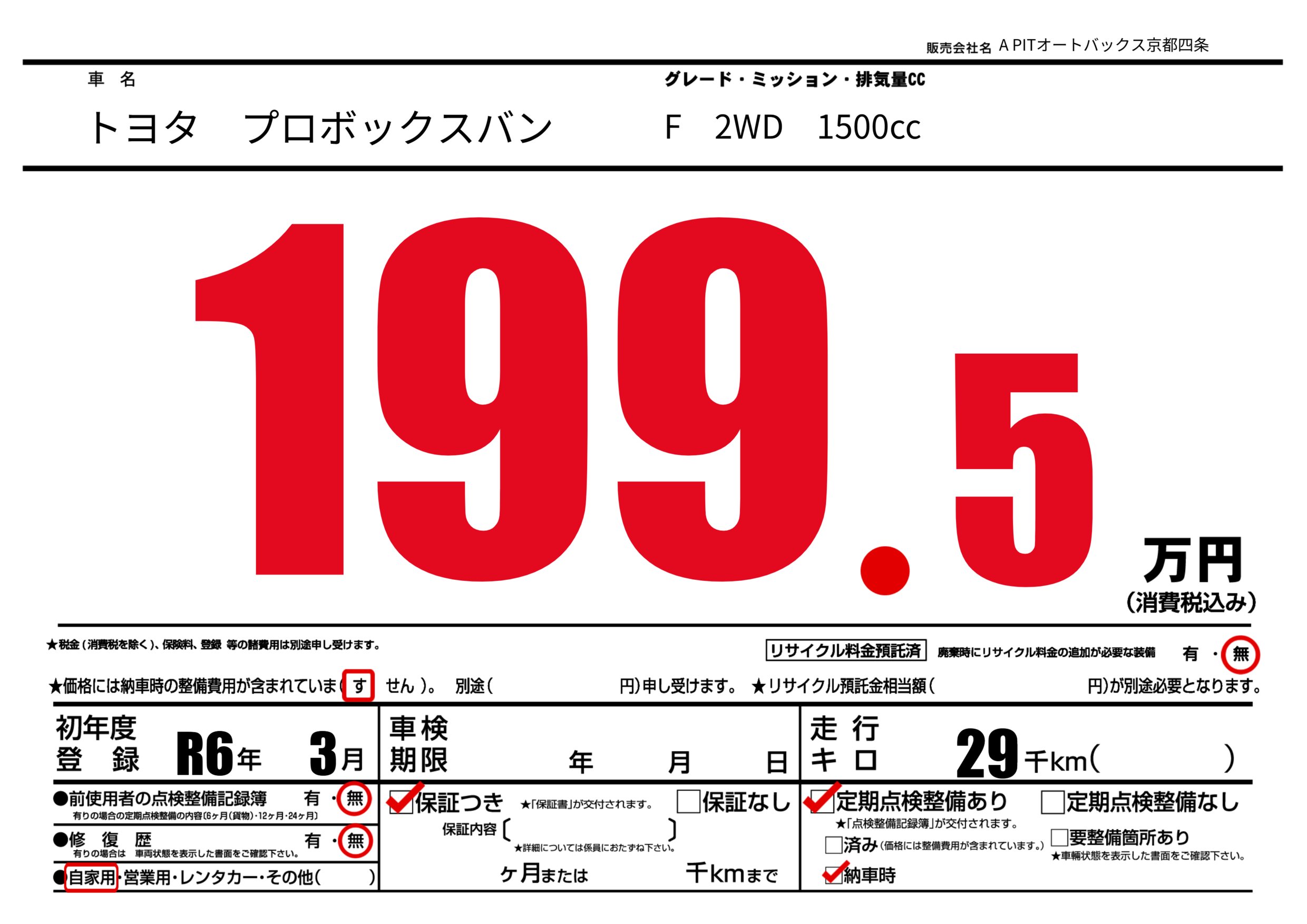 | 定期点検整備 | 定期点検整備あり 納車時あり | ||
