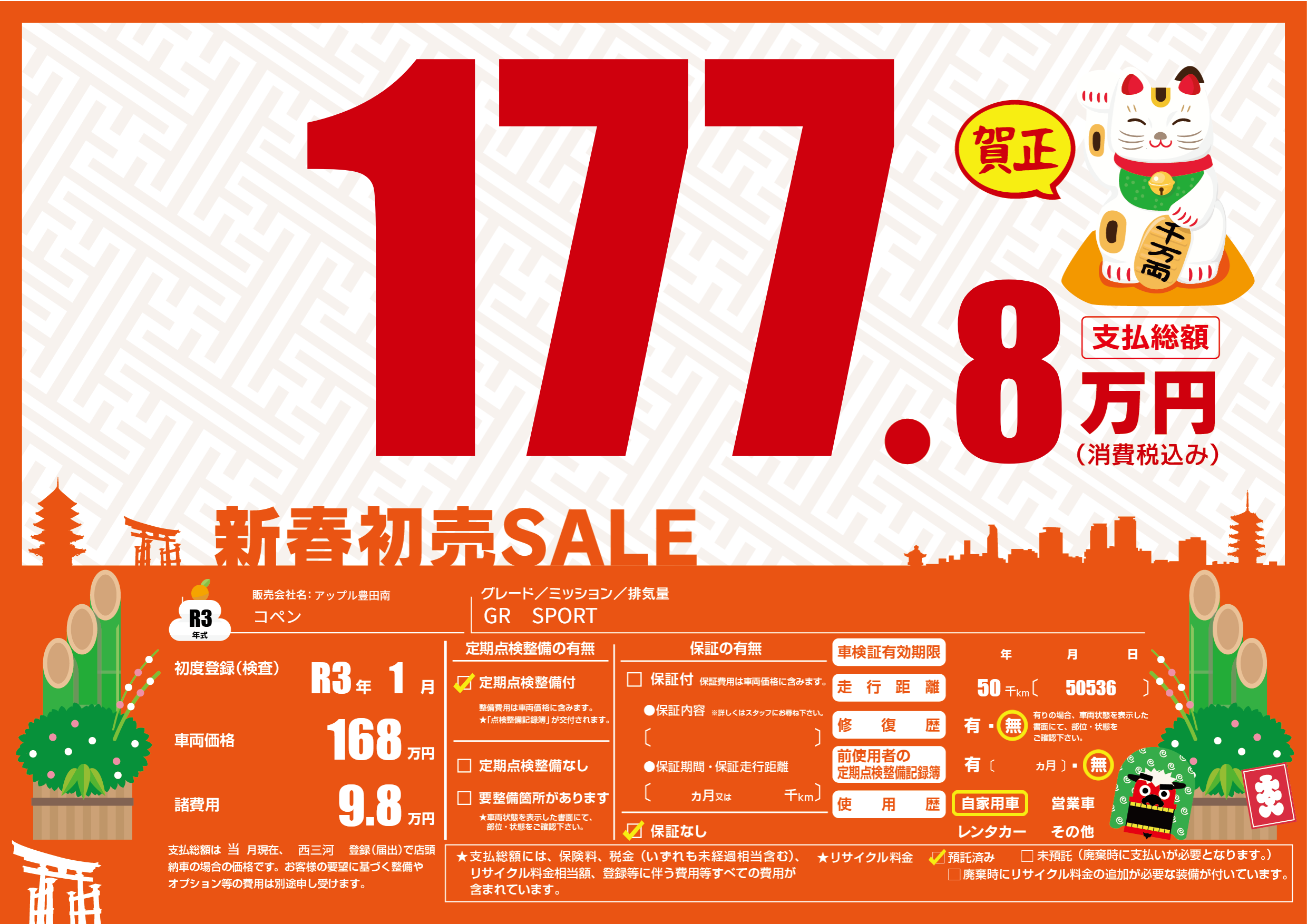 | 走行キロ | 5万km | 初年度登録 | R3年1月 |
