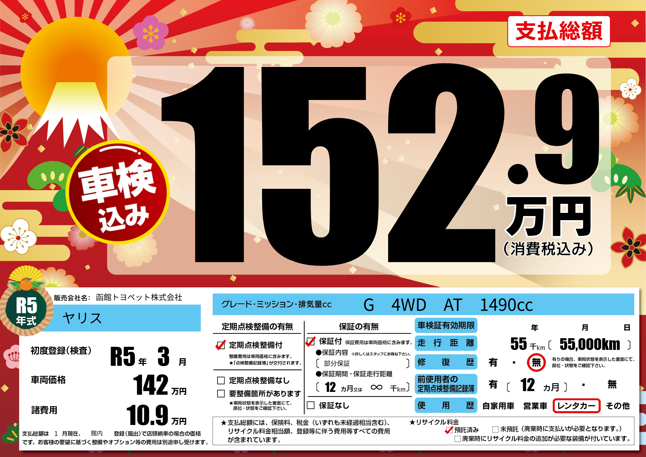 | 走行キロ | 5.5万km | 初年度登録 | R5年3月 |