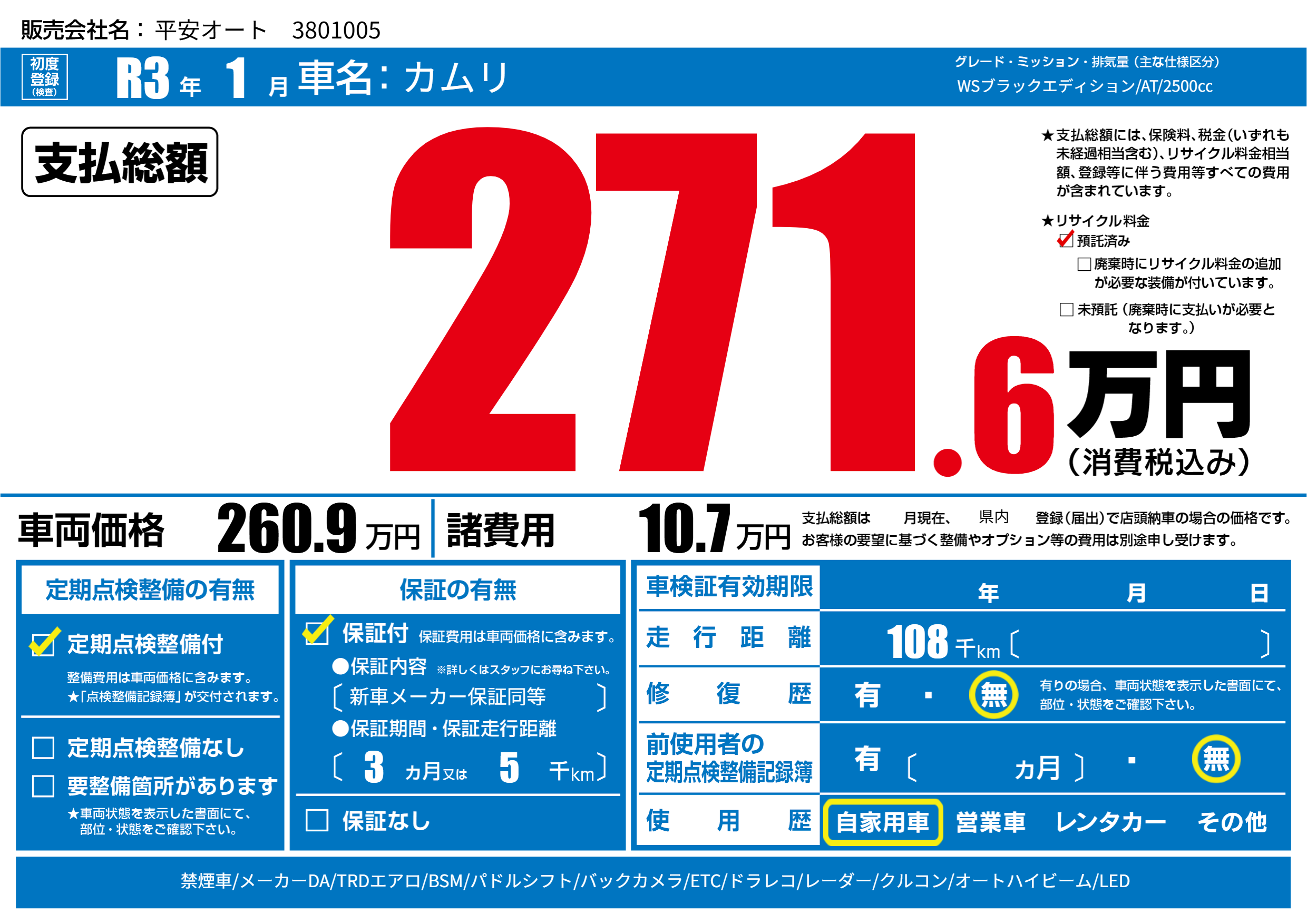 | 走行キロ | 10.8万km | 初年度登録 | R3年1月 |