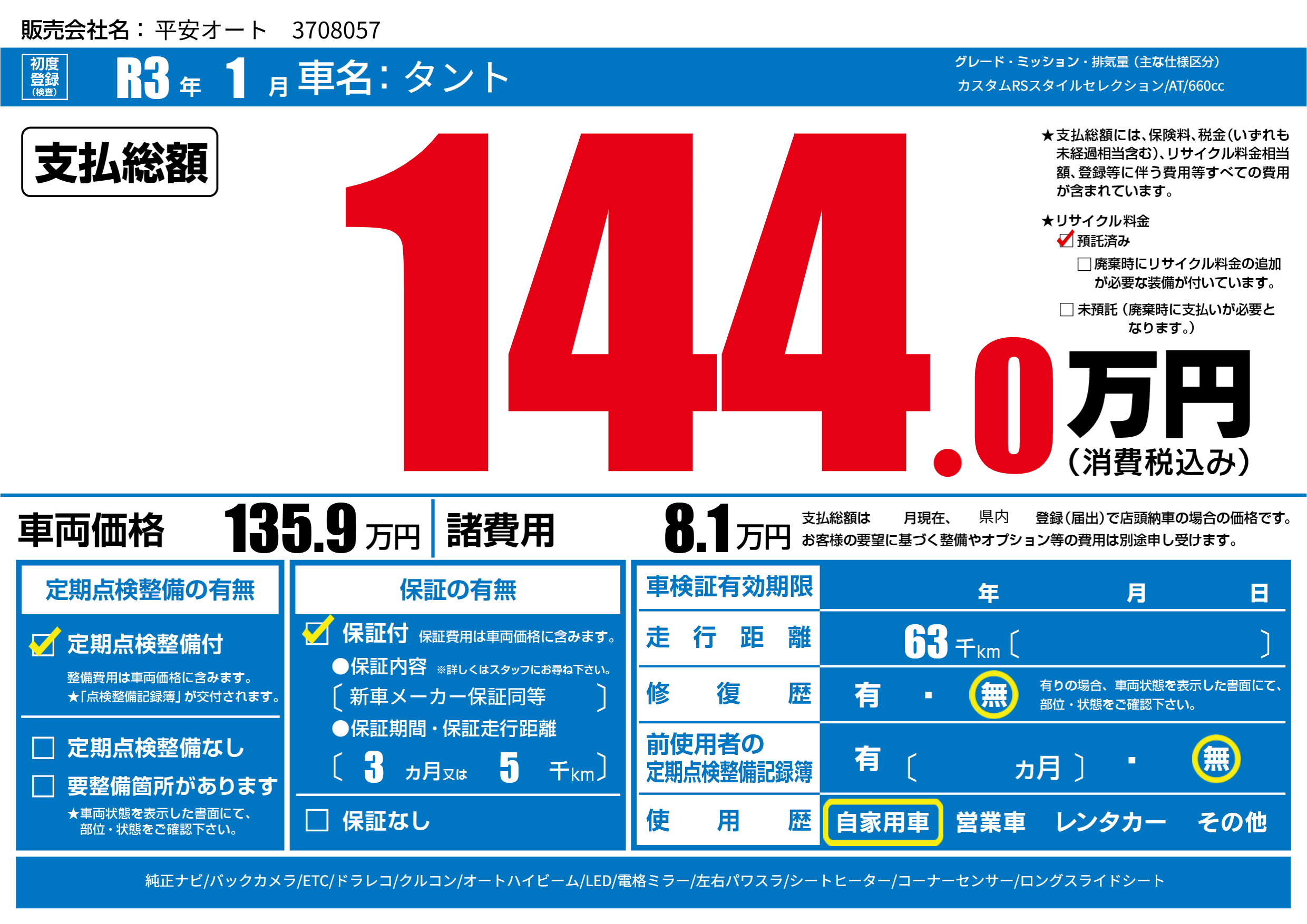| 初年度登録 | R3年1月 | ||